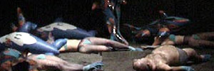 E’ nella "giustapposizione continua di apparenza umana e di apparenza inumana", come l’ha definita Franco Fortini nell’introduzione al Faust da lui tradotto integralmente, la più chiara analisi della messa in scena di Lenz Rifrazioni. Una giustapposizione che Fortini fa risalire alla visione di un Puppenspiel, ovvero di un Faust per marionette, che Goethe ebbe occasione di vedere ancora adolescente e la cui suggestione lo accompagnerà per tutta la vita, dall’inizio della scrittura faustiana, non ancora trentenne, fino al compimento ultimo a ottant’anni.