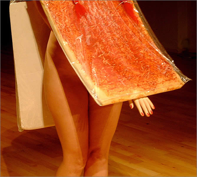![]() Si tratta di un evento dal carattere performativo, una sorta di sfilata drammaturgica delle parole inscritte sugli involucri corporei dei personaggi che compongono l'affresco faustiano. Sfileranno in uno spazio scenico esibitivo una selezione di circa trenta pezzi, le opere che esprimono con più forza la drammaturgia visiva compiuta in tre anni di lavoro. La bibliofilia irretita e sontuosa del costume di Faust; la dannazione carceraria di Margherita corazzata da un bustino cartonato trafitto da un arabesco di chiodi appuntiti, corpo amoroso condannato a mostrare mammelle rinsecchite di stracci carnosi solo di colla; il costume volatile di Ariel, sospeso dalla moltitudine dell'elio gassoso che alimenta il respiro nero del male morale di Faust, sono alcuni tra i costumi fondamentali per la ri-iscrizione visiva del verbo drammatico. Maria Federica Maestri |