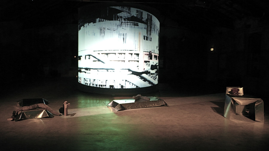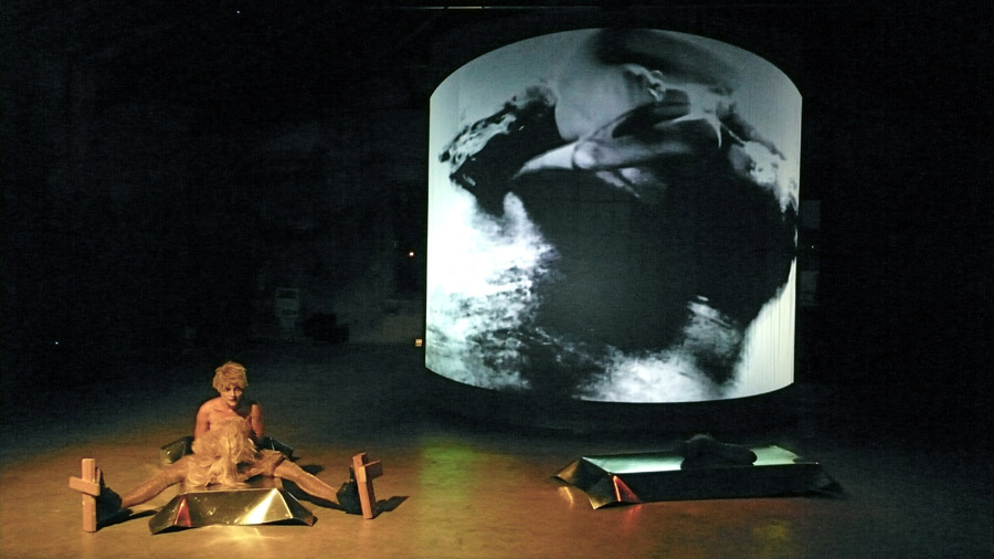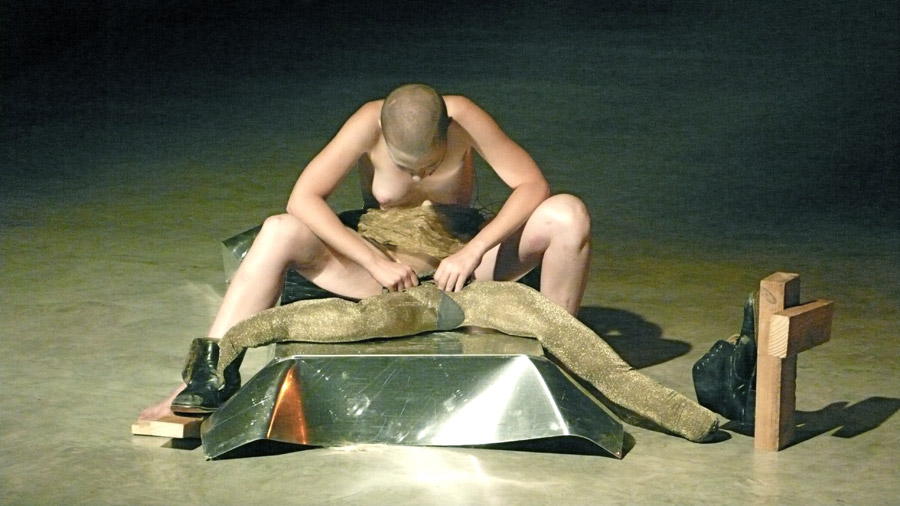 Il binomio/confronto è costruito attraverso una drammaturgia visiva e materica agìta da due figure femminili, Sulamith - l’Amata del Cantico dei Cantici e personificazione della nazione ebraica - dai capelli color cenere, testimonianza dell’identità giudaica arsa nei campi di sterminio della Grande Germania hitleriana e Margrete - l’Amata dell’Urfaust di Goethe, simbolo letterario femminile della nazione tedesca – la donna dai capelli d’oro della tradizione umanistica ottocentesca. L’identità visiva della performance si definisce attraverso un’imagoturgia polarizzata su un grande cilindro disegnato scenicamente dentro il corpo dell’interprete, e si sostanzia in un’impalcatura installativa di forme domestico-metallico-anatomiche che, accogliendo i corpi agonizzanti di Sulamith e Margrete, rafforzano matericamente la condizione di violenza e costrizione a cui sono costretti i personaggi: il letto, il tavolo, la sedia, elementi primari di quotidianità, si traspongono in incubi metallici che custodiscono drammaticamente il destino tragico delle due donne. Il grande spazio del cantiere ferito e cicatrizzato dalla decostruzione urbanistica entra nella dimensione performativa testimoniando, attraverso una compenetrazione visiva estrema, la forza devastante della Storia che compone tutto, umani e paesaggio, in un unico Campo tragico.
