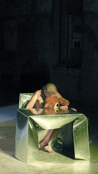 Al destino tragico delle due donne si accomuna la sofferenza esiliata della parola poetica di Ovidio - suggerita da una sorta di epopea tragica collocata ai bordi della scena - condannato dai suoi stessi versi all’allontanamento forzato dalla propria terra. Il ‘Nero Latte’ (Schwarze Milch) della Todesfuge di Celan, simbolo primario della litania della violenza a cui sono inchiodati eternamente i prigionieri ad ogni ora del giorno, viene scandito come in una ‘fuga’ musicale polifonica, dal sussurro finale di un orsacchiotto di peluche stretto al corpo dell’interprete, segno apocalittico dell’infanzia del poeta, in un ‘noi’ lirico spersonalizzante, unica voce possibile dopo la tragedia dello sterminio. L’azzeramento imposto dal paradigma della morte collettiva - l’impossibilità della parola definita dopo il dramma della Shoah - si interseca con il cantico di valorosa sconfitta del poeta e della poesia, condannati per sempre ad una condizione immanente di naufragio e di oblio. |