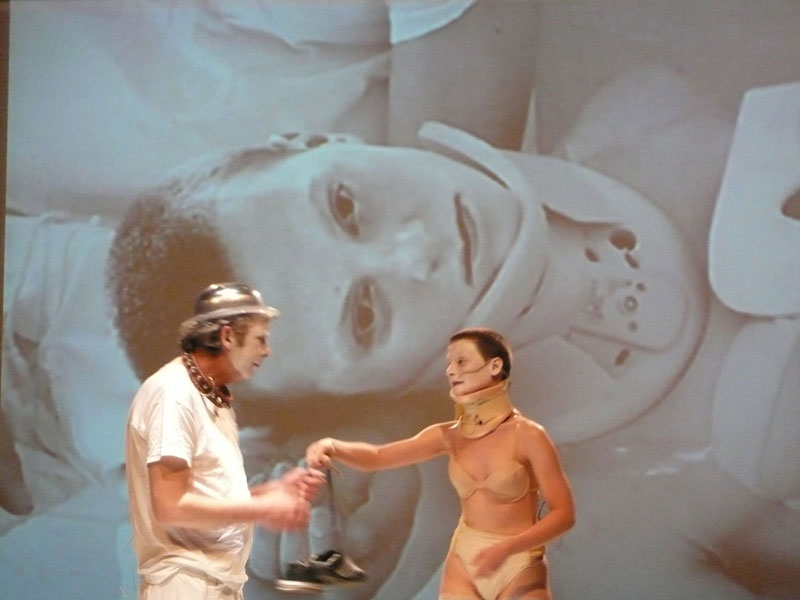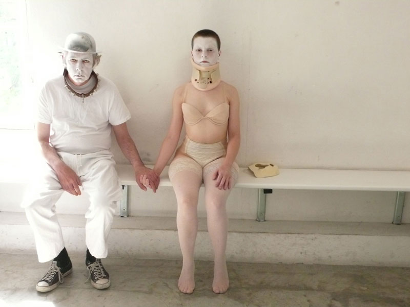 H 1|2|3 sono le prime tre sequenze visuali e performative di un ampio progetto, che si svilupperà tra il 2009 ed il 2010, in cui la drammaturgia si pone come corpus di valutazioni analitiche e materico-estetiche a partire dall’Hamlet di William Shakespeare. Il progetto biennale è realizzato in collaborazione con AUSL di Parma_Dipartimento di Salute Mentale, con l’Agenzia Disabili del Comune di Parma e la cooperativa sociale Domus di Parma. Questa fase di lavoro, avviata dopo la presentazione di H= 277 lb (HAMLET=277 LlBBRE) nel mese di marzo al Teatro San Martino di Bologna, vede come interpreti Valentina Barbarini, Guglielmo Gazzelli, Paolo Maccini, Vincenzo Salemi, Elena Sorbi, Elena Varoli, Barbara Voghera, già interprete dello spettacolo Ham-Let (1999) di Lenz Rifrazioni. In H 1|2|3 la storia del Principe Amleto è riletta e ‘valutata’ attraverso un’indagine visiva, materica e di riflessione fisica sui corpi degli interpreti che entra nel linguaggio shakespeariano per definire un nuovo orizzonte drammaturgico concreto costituito a partire dalle esistenze psichiche e materiali degli attori: il linguaggio circoscrive parole nuove che rendono vive la sofferenza e la tragicità di Hamlet e dell’esistenza stessa, così come della morte che sembra circoscrivere ogni azione umana. Il fantasma del Re, padre di Amleto, costretto a muoversi lentamente e a maledire la sua stessa sorte tragica con parole crudeli, è inscritto all’interno del corpo stanco ma pieno di forza visionaria dell’interprete che sembra scivolare lentamente al di fuori del personaggio shakespeariano fondando uno spazio poetico autonomo inciso nella sua materialità che nell’orrore della morte scolpisce un nuovo ritratto scenico. Nell’incontro con il fantasma del padre il Principe Amleto, ornato da un cappellino di metallo e da un collare borchiato come incastonati nel corpo dell’interprete, colma di parole ossessive il dramma incestuoso della madre e il gesto omicida dello zio cercando nella visione violenta di quelle immagini la sicurezza della vendetta. Ofelia, ferita dalla pazzia nella sua bellezza, costretta alla fissità di un collare ortopedico, restituisce ad Amleto tutte le parole e le cose che li avevano legati in amore, segni materici di un cantico d’addio che si concentra in un gesto finale ferito da tragicità e sofferenza. Muovendosi sulla scena come elementi meccanici Amleto e Ofelia conservano nella memoria tutto il dolore della separazione da se stessi e dal loro amore. Il progetto Hamlet è realizzato in collaborazione con AUSL di Parma_Dipartimento di Salute Mentale, Agenzia Disabili_Comune di Parma e cooperativa sociale Domus_Parma