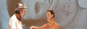 Nell’incontro con il fantasma del padre il Principe Amleto, ornato da un cappellino di metallo e da un collare borchiato come incastonati nel corpo dell’interprete, colma di parole ossessive il dramma incestuoso della madre e il gesto omicida dello zio cercando nella visione violenta di quelle immagini la sicurezza della vendetta. Ofelia, ferita dalla pazzia nella sua bellezza, costretta alla fissità di un collare ortopedico, restituisce ad Amleto tutte le parole e le cose che li avevano legati in amore, segni materici di un cantico d’addio che si concentra in un gesto finale ferito da tragicità e sofferenza. Muovendosi sulla scena come elementi meccanici Amleto e Ofelia conservano nella memoria tutto il dolore della separazione da se stessi e dal loro amore.
