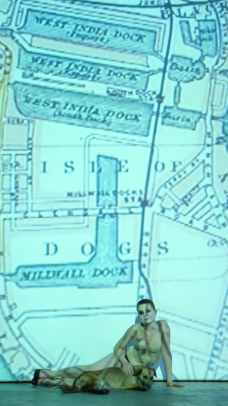Il nostro "lavoro" è stato quello di fornire tracce di scritture mai definitive, su queste si sono composte immagini via via che la scena, il senso, le parole, la musica si sono sovrapposte, è un rebus senza soluzione che muta continuamente. L’opera concepita in cinque quadri declinati tutti al femminile, si struttura in una successione di paesaggi drammaturgici e visuali autonomi. In scena cinque Sibille contemporanee sovrappongono al rebus sentimentale della propria esistenza la crisi e la sterilità dell’occidente, vivendo la loro totale solitudine in compagnia di cinque cani, unici abitanti dell’Isola dei Cani, una terra desolata ai confini della grande città (una penisola realmente esistente nell'East End di Londra nell'ex area commerciale delle Docklands) da cui sgomente osservano se stesse e i residui del mondo che le circonda. L’Isola scenica è un emiciclo ricoperto di sabbia desertica circondato da sette onde visive, piani ‘liquidi’ attraversati da grandi immagini verticali, visioni in fuga di dettagli del mondo naturale e domestico resi abnormi dalla ripresa filmica. Al centro della volta scenica il fluire senza scopo degli elementi viene interrotto da una macroicona, raffigurazione delle cinque sibille, reverente alla classicità michelangiolesca della Cappella Sistina e nel contempo di deriva beckettiana (Dondolo) per quell’ininterrotto movimento della poltrona elettrica in cui siedono le cinque donne, trono semovente ed unico elemento plastico presente sulla scena. Un trono/altare per il corpo da esporre in vaticinio – una macchina reclinante che muove l’umano anziano, impotente, disteso a guardare i rifiuti esistenziali che compongono il puzzle della sua vita - è il luogo da cui annunciare l’enigma senza risposte del tempo presente. Come lettere mute da decifrare, i Cani icone sono i guardiani del tempio, compagni immobili delle cinque cagne parlanti, copulanti, ragionanti ed infine un Cane reale, animale, amico e fedele oltre l’intelletto. I cinque quadri sono intessuti dalla partitura elettronica elaborata da Andrea Azzali, storico collaboratore della compagnia, che ha costruito un habitat “sonante” atemporale: un dialogo tra le composizioni polifoniche delle “Prophetiae Sibyllarum” di Orlando di Lasso (1560) e le voci delle attrici scomposte e frammentate in echi e riverberi. Onde testuali sfumano in un continuum di schiume sonore diventando vapori vocali, soffi, rigurgiti, borborigmi rocciosi, prodotti terminali di un processo di essiccazione, di disidratazione delle frequenze sonore della voce. |
