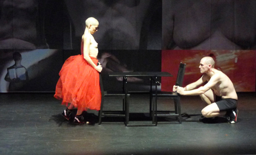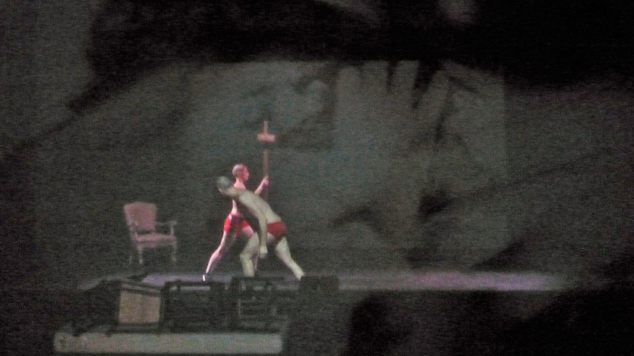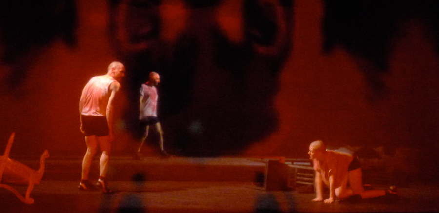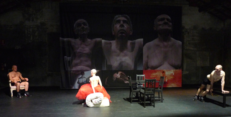 Dopo aver realizzato nel 2011 i primi sei capitoli del progetto AENEIS < 1. LA CORSA DEL CINGHIALE / 2. MI SOTTOPONGO AL PESO / 3. IL POLMONE / 4. I DRAGHI / 5. DI QUALI PENE E TORTURE / 6. CARNI ARROSTITE, Lenz procede nella propria ricerca drammaturgica mettendo in scena i restanti sei episodi ispirati alla seconda parte del poema: 7. IL COMPENSO / 8. GRIGIO PIOMBO / 9. NIPOTI / 10. VARI ATTACCHI / 11. LA PICCINA / 12. SPIETATO?. E’ sempre lo spazio perimetrale dell’Ara Pacis – monumento celebrativo e propagandistico eretto nel Campo Marzio tra il 13 e il 9 a.C. per glorificare le vittorie augustee e negli anni del fascismo luogo delle esercitazioni ginniche della gioventù romana – a definire la volumetria della scena di Aeneis in Italia, di cui però in questa seconda parte si mostra l’interno: un luogo senza luce, un covo segreto, un nascondiglio clandestino e non più la luminosa camera della memoria dei primi sei capitoli dell’opera. Scompare il fasto visivo delle pareti “decorate” dalle immagini, sostituito da macroretinature, che appaiono come enormi grate di un confessionale della storia, su cui scorrono, in conflitto permanente, le sequenze visive della guerra tra Enea e i ribelli italici. Nessuna cerimonia del ricordo, nessun padre da odiare, nessuna amante da abbandonare, nessuna madre da desiderare, nessun passato e nessun futuro, solo un ‘al di qua’ insanguinato dalla retorica del conflitto, solo il presente anonimo, crudele e privo di pathos. L’arrivo in Italia di Enea sembra segnare l’inizio di un epos tragico che permane costante nella storia italiana: una guerra senza eroi, una violenza senza soggetto, un’architettura umana muta e incapace di sentimento. Così in una visione metastorica del conflitto originario, l’occupazione del Lazio da parte del pius Enea e la ribellione del giovane Turno disobbediente al nuovo ordine, si trasfigurano in un tempo appena passato, la notte luttuosa degli anni settanta.