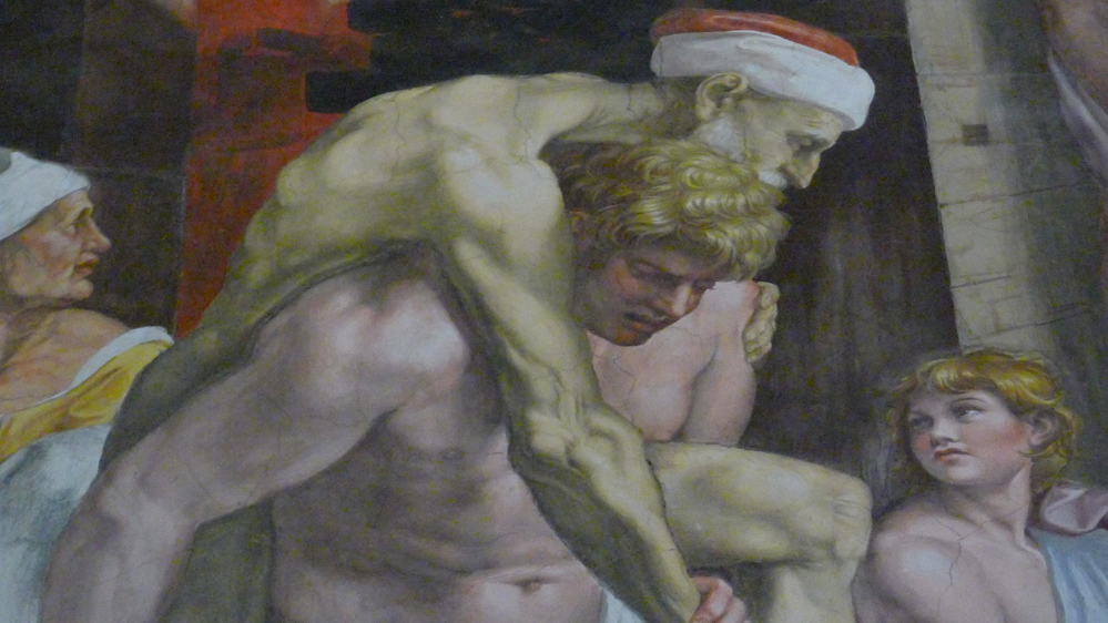 An episode on the subject of old age, blending many different characters and situations. The new empire has its origin in a plural ‘breed of the old’ that reproduces itself from Patres to Patres. Upon the already old Aeneas lays the burden of care without glory.It wouldn’t be heavily hard to get old; it’s in the chaotic order of the world. On the other hand, to the one who has been put in charge of a mission, the burden of the objective, of the result is added. Bodies are shifted, old age is added to old age like wrinkles and lines on flabby skin, crooked pace and twisted fingers, brains go default before the one purpose. And what’s the purpose if not to live till the last second? Breathless. But purpose is the Gods’ fault.