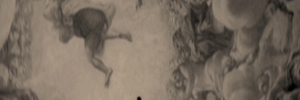 L’affresco della cupola del duomo di Parma affrescata dal Correggio nei suoi dettagli piu’ nascosti diventa il segno portante di una metamorfosi originaria che comprende materia, corpo umano, pensiero e storia, il punto iniziale di una composizione pittorica che tutto ricompone in un unicum di movimento, bellezza e proiezione divina. la potenza della forma ancora impregna la pratica artistica contemporanea, i suoi luoghi di lavoro, l’estetica dei nuovi artefici. E’ un’illusione, come il salire rotatorio dei corpi verso l’alto, verso il punto di fuga dell’anima, verso il futuro con lo sguardo rivolto al passato, a noi, come l’angelo di Benjamin, come l’angelo di Klee. Il buco nero attrae e devia lo sguardo verso la scomparsa del senso riempiendo di solo segno lo stato dell’arte. Buco nero, memoria scomparsa, traccia sul corpo pulsante come nevo marchiato, sdoppiato, pura forma che rimanda al palazzo, alla fuga, al monumento, al movimento incessante, deviante in angoli che spingono al medesimo tracciato. Over construction. Tutto risale, verso dove?