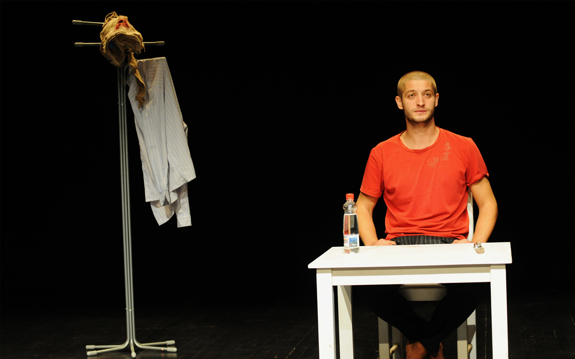 Sul concetto di categorizzazione in arte che Boris Kadin tratta in modo estremamente autoironico. “Ci sono tre categorie di artisti: quelli che possiedono la tematica di cui trattano, quelli che potrebbero arrivarci, e quelli che decisamente non l’hanno afferrata. Dal mio punto di vista, l’artista può rivolgersi onestamente a un tema soltanto introiettandolo senza riserve e dandone testimonianza attraverso il proprio corpo. Per confermare questa tesi, stanotte avrò bisogno di un coltello”. Secondo Boris, Joseph Beuys è un artista al di sopra di ogni categoria. L’unico in grado di parlare di Beuys è il “coniglio morto” che all’inizio della sua prima mostra indipendente gli giaceva in grembo e ascoltava Joseph Beuys spiegare il lavoro di Joseph Beuys. Via Negativa è un progetto internazionale teatrale/performativo nato nel 2002 a Lubiana (Slovenia), ispirato e guidato dal regista Bojan Jablanovec. La formazione si concentra sui due ambiti del teatro e della performance, con un focus dedicato alle connessioni tra i due settori. La formazione slovena è stata ospite di Natura Dèi Teatri in due recenti edizioni.