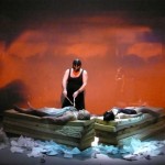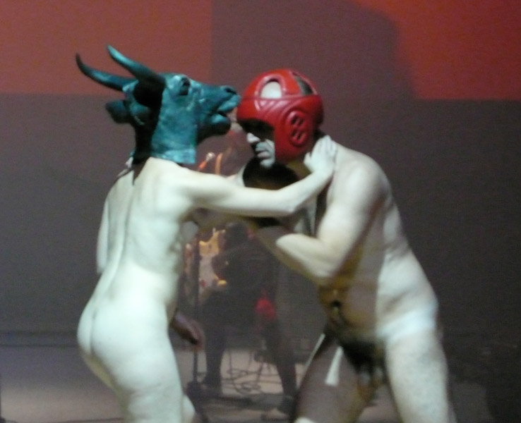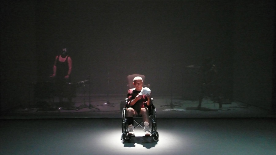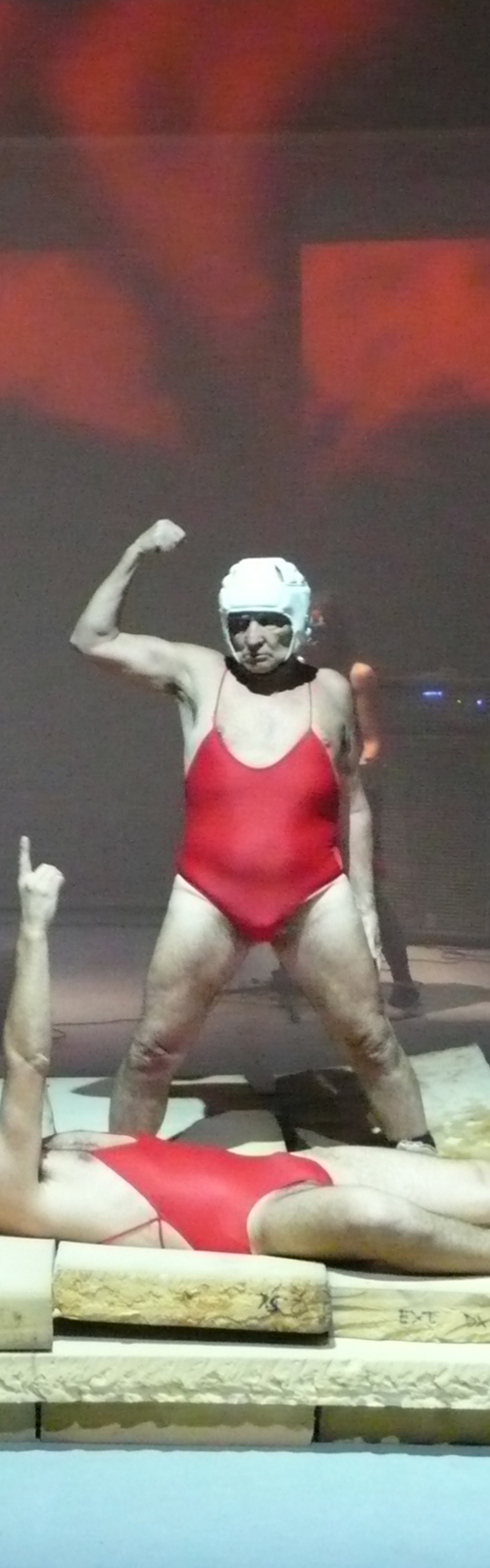 In questo quadro si celebrano i giochi funebri in onore del padre. Un episodio corale intonato dall’ensemble Black|punk con gli OvO, scuola gladiatoria contemporanea, che eleva e fa vibrare questa performance funebre a imperitura memoria del vecchio histrione. Giochi, giochi in onore dei Vecchi, giochi di giovani e di vecchi, esperienza e tracotanza, pazienza e fretta sciocca per arrivare dove c’è una meta, uno scopo che appare divino ma che si svela un’ombra. L’ombra di un gesto sempre uguale, un movimento dall’alto verso il basso a calare il sipario sulla testa del morto.