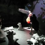 E proprio la parola poetica che si allunga fisicamente verso lo spettatore, ma, ancora prima, una poesia della scena che rifiuta la simmetria del senso diventano le sole chiavi di un accesso, comunque parziale, all’universo iconografico, alle immagini potenti, al pastiche di suoni, versi, citazioni di un’opera complessa, che si rigenera e genera nuovo significato in ogni scena, diventando sfuggente eppure percepibile nella sua interezza, nel suo nero fluire.
