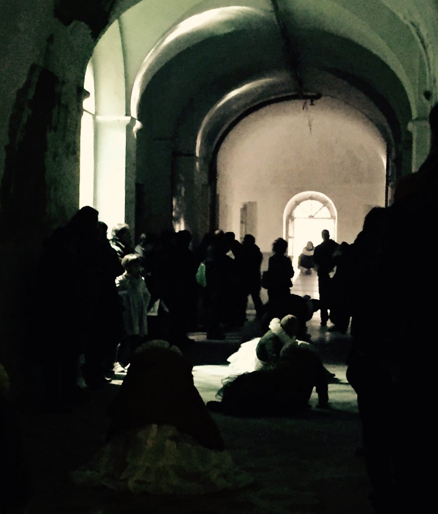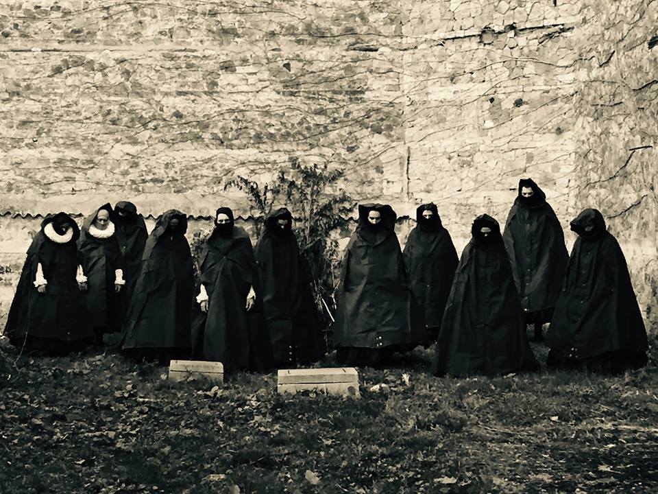 Inquisizione deriva dal verbo latino inquirere, che significa investigare, indagare, infine ricercare. Abbiamo ricercato un luogo che potesse essere impregnato di storia e sofferenza umana, voci e lamenti penetrati nelle mura e risonanti come echi, adatto alla moltiplicazione di frammenti cantati come ritorni vocali dall’opera intera, di cori intonati da coristi reclusi in cellette, visitato da spettatori itineranti come popolo di un moderno autodafé, agito da corpi d’attore pronuncianti astuzie per confessioni da estorcere, specchiato da un’imagoturgia che, come in una sfera di cristallo, potesse riunire il presente e il passato come in un giardino dei lamenti con, sovraimpresso, un Giardino delle Delizie.