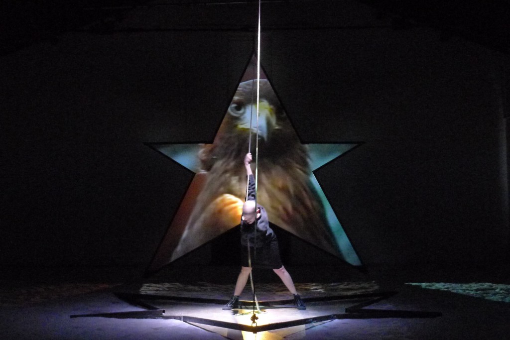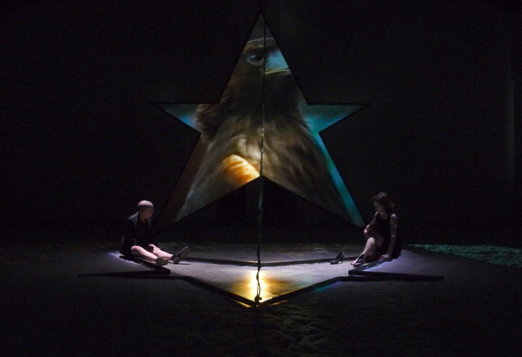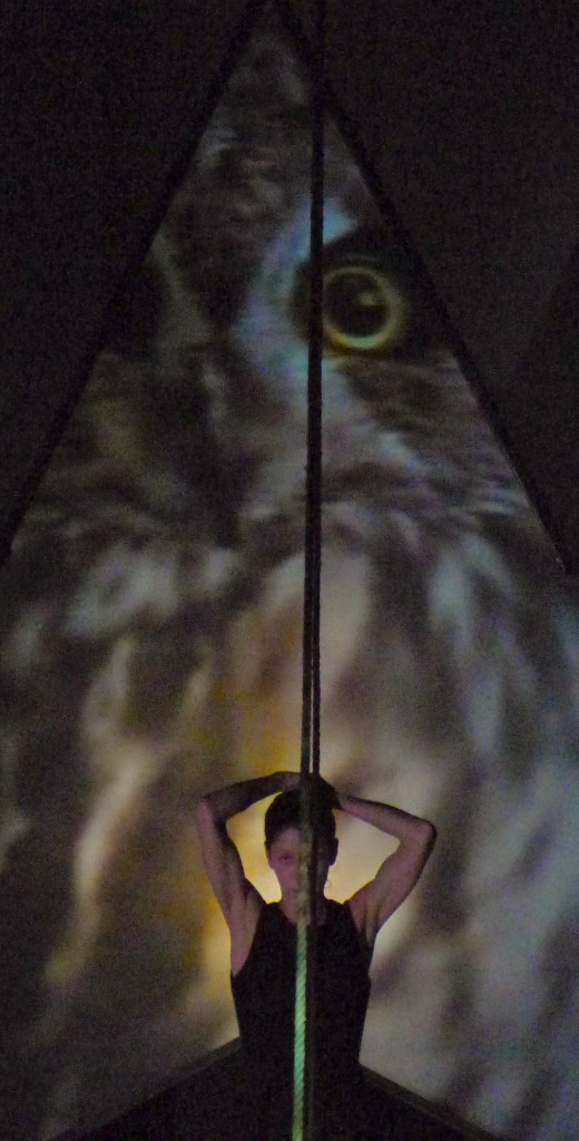 Immagini del mio tempo, persone del mio tempo – Solstizio d’Inverno -, la sala che risuona memoria e presente, i rapaci dalla lunga vista, il gufo Edipo che vede dal di dentro, figure femminili in attesa di luce crescente, resistenza, pazienza sospesa  tra il qui e l’allora, tra il qui e ora, sempre.