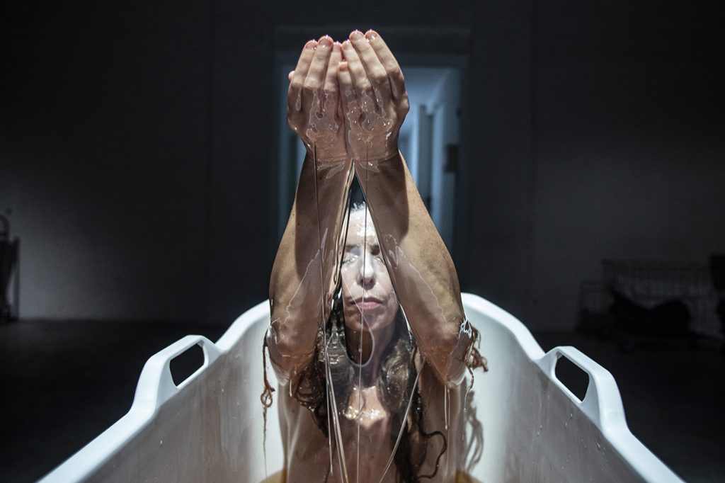 In the 2022 version, the protagonist remains Sandra Soncini – ‘extreme interpreter’ of the work -, accompanied by performers Carlotta Spaggiari and Tiziana Cappella, while the sound design by Andrea Azzali reworks the music of the previous version created together with Adriano Engelbrecht. In Lenzi’s mystical theatre, the reference to the Saint of Siena is purely imaginary: from the initial tragedy of a painter, CATHARINA VON SIENA becomes the struggle of a saint who fights temptations with penitence and the injustices of the world with prayer. The new version artistically translates the intensity of Saint Catherine’s spiritual praxis, transforming it into a mystical reverberation of the liberation and affirmation of the contemporary, undisciplined, irregular and marginal body.