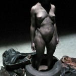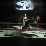 Dido d’oggi, dipinta di nero, quadro del presente che riflette il passato, storia recente e storia avvenente, donna incinta/ta e suicidata dall’amante fuggito per il compito virile. Fecondare una patria nuova che partorisca l’impero, il nuovo confine del mondo globale e del pensiero individuale. Le immagini rimbalzano, come palline di flipper, colpendo bersagli sonori di cose accadute, presenti e future. Giovinezza, giovinezza: il trucco copre di bianco il nero che stava sul bianco, di nero quel che un tempo era nero. I crani vuoti degli ospiti infernali, i teschi volanti, ricordano che età e amori perduti mai più rispuntano dal mare.