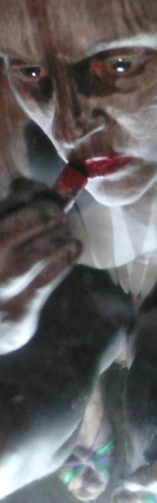 Travestimenti. E anche la sessualità è motivo di rispecchiamento, di scambio d’identità. Lei si spalmerà di polvere bianca e bacerà lui, rosse le labbra, che intanto si era dipinti di nero i capelli: metamorfosi possibili? Non pare esserci una dimensione psicologica ma proprio planetaria.