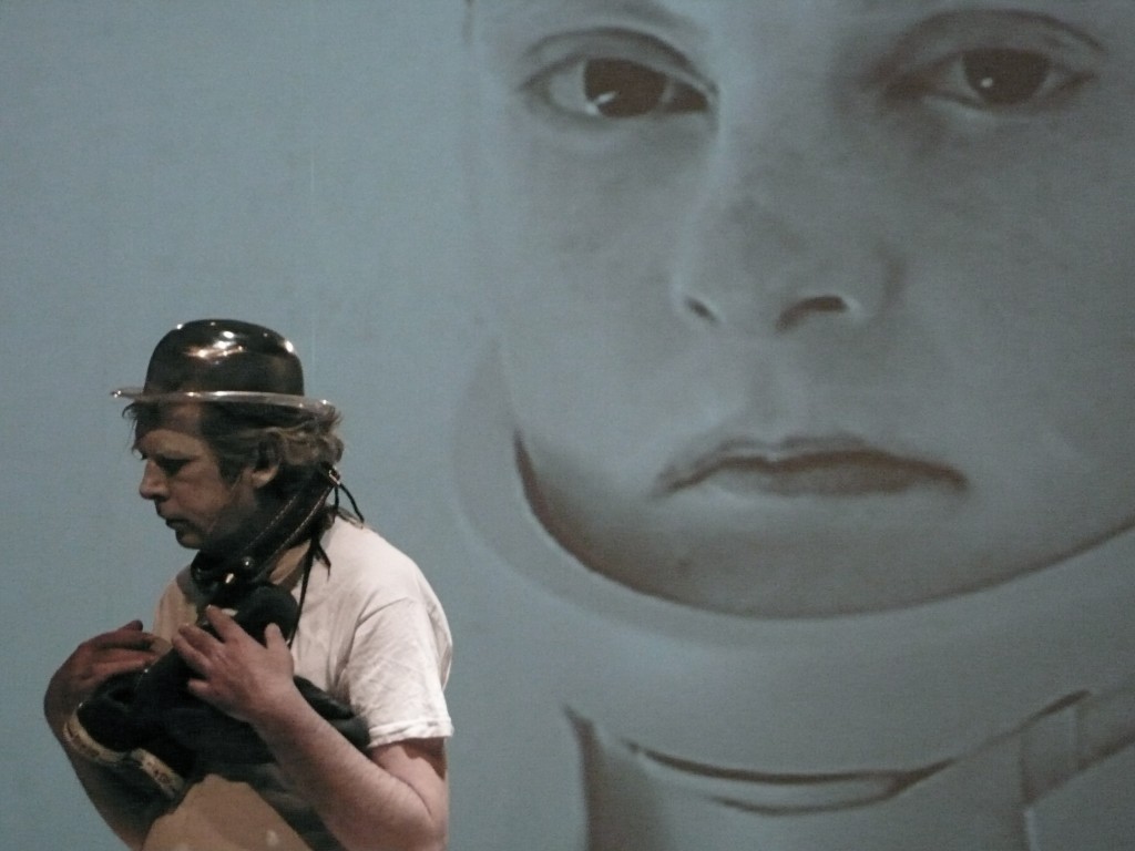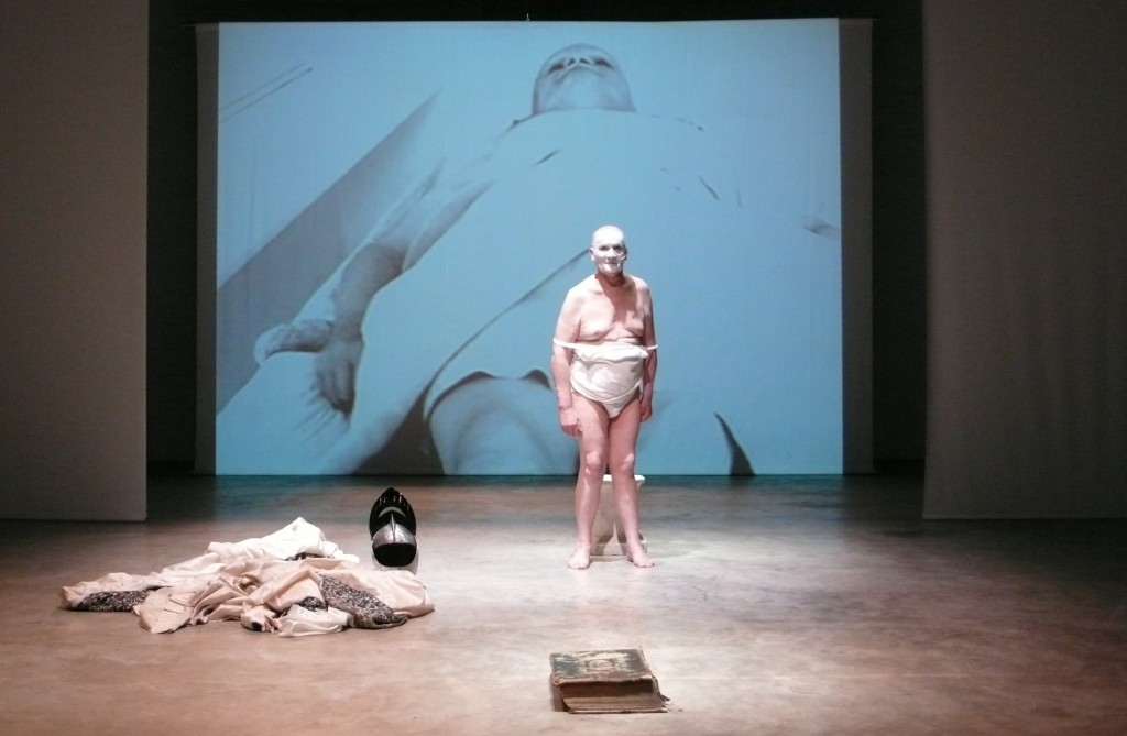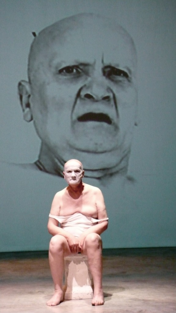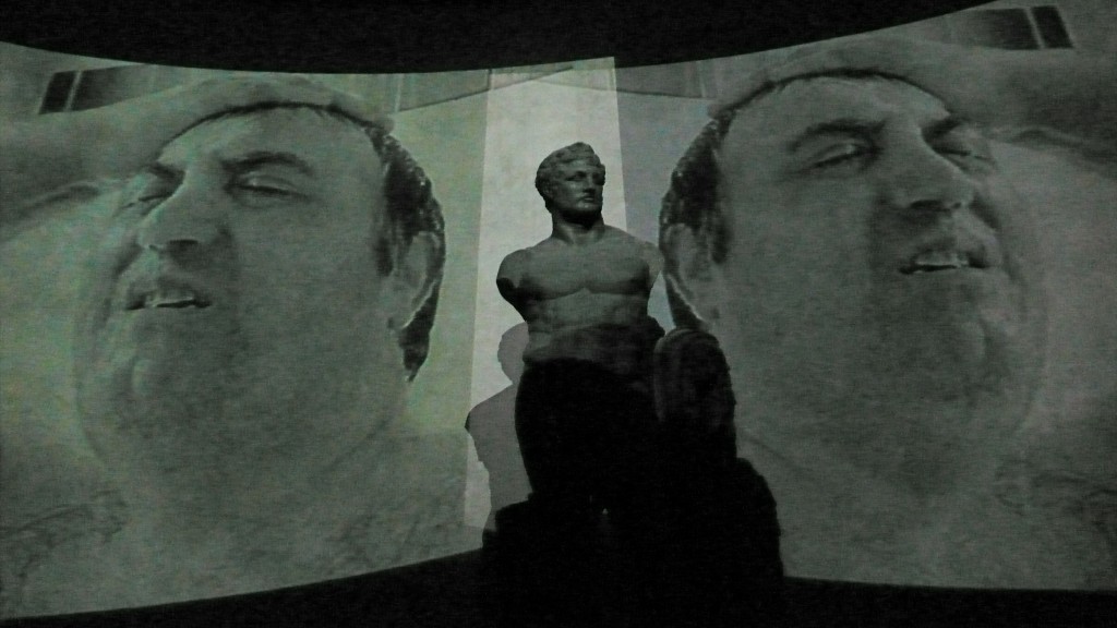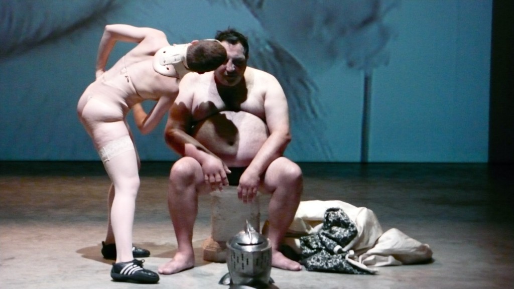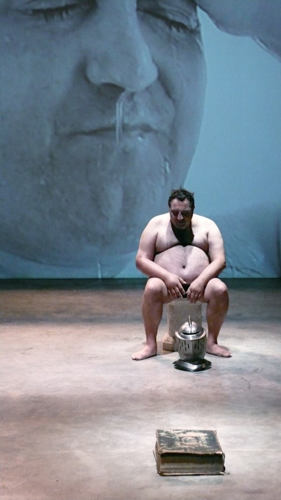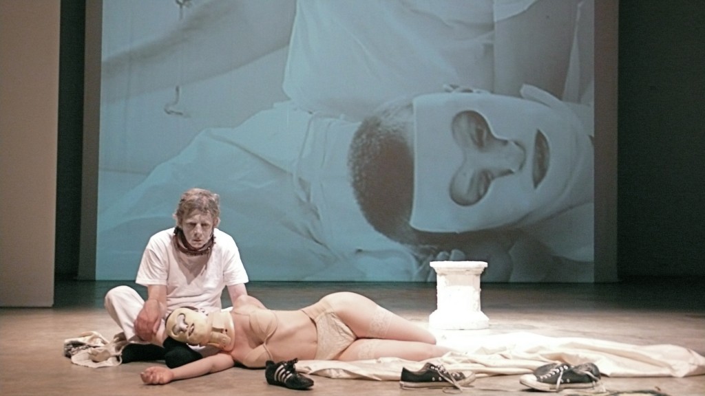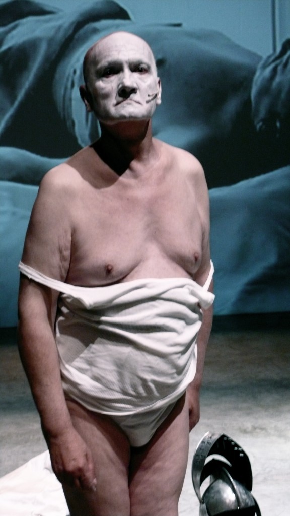 È dal 1999 che Lenz collabora con il Dipartimento di Salute Mentale portando il teatro e l’arte nella vita di chi ha vissuto il manicomio. Ecco che nei loro volti, “trasduttori di forza” (così vengono chiamati dagli autori), nei loro occhi assenti e perennemente sedati – eccezion fatta per l’irrefrenabile donna del gruppo –, si vive quello spaesamento di cui sopra, un continuo malessere di chi guarda con pietas i video nei quali gli attori/pazienti si preparano concedendosi un sorriso o facendosi il trucco, una stretta allo stomaco che d’un sol colpo fa vacillare quel “kritikos” dal quale deriva l’esperienza nel giudizio, per far riemergere improvvisamente la crisi. È un percorso frastornante quello creato tra le sale della Galleria Nazionale, tra busti in marmo, putti che nella semioscurità diventano angoscianti figure appese e amputate, il retropalco e poi la maestosità del teatro. La regina, interpretata da Franck Berzieri, è immobile e minuscola nei 40 metri di palco, attorno il vuoto riempito solo dalle voci, che fuori da qualsiasi canone artistico diventano dolorose cantilene. Sul fondale, in un gigantesco video – come tutti in un bianco e nero dreyeriano – l’espressività della Voghera è prestata a una furente proiezione della regina. Claudio appare solo in video, dolorosa presenza di Guglielmo Gazzelli venuto a mancare pochi giorni prima del debutto, la sua preghiera negata è tra le scene più intense.