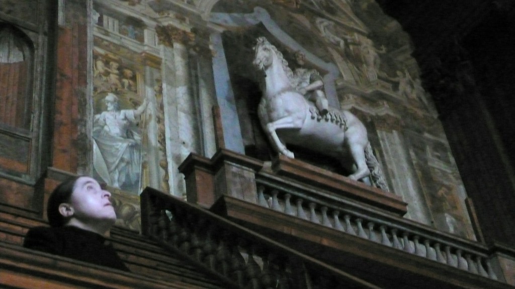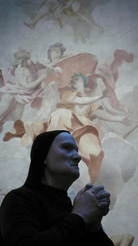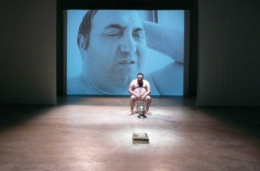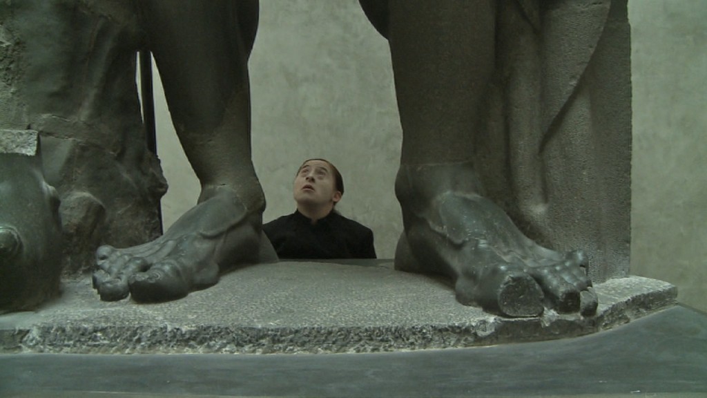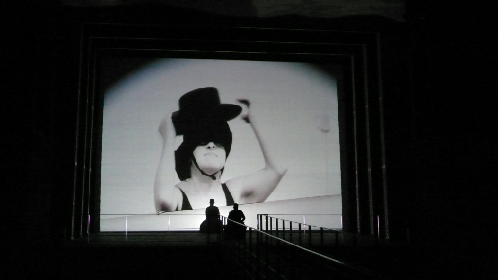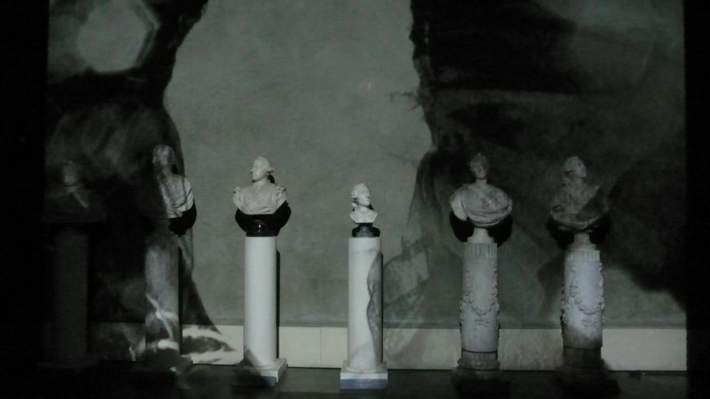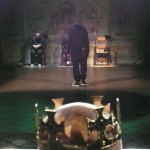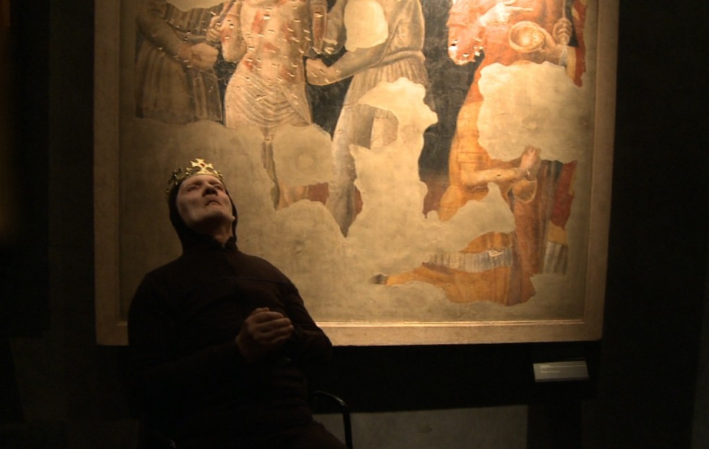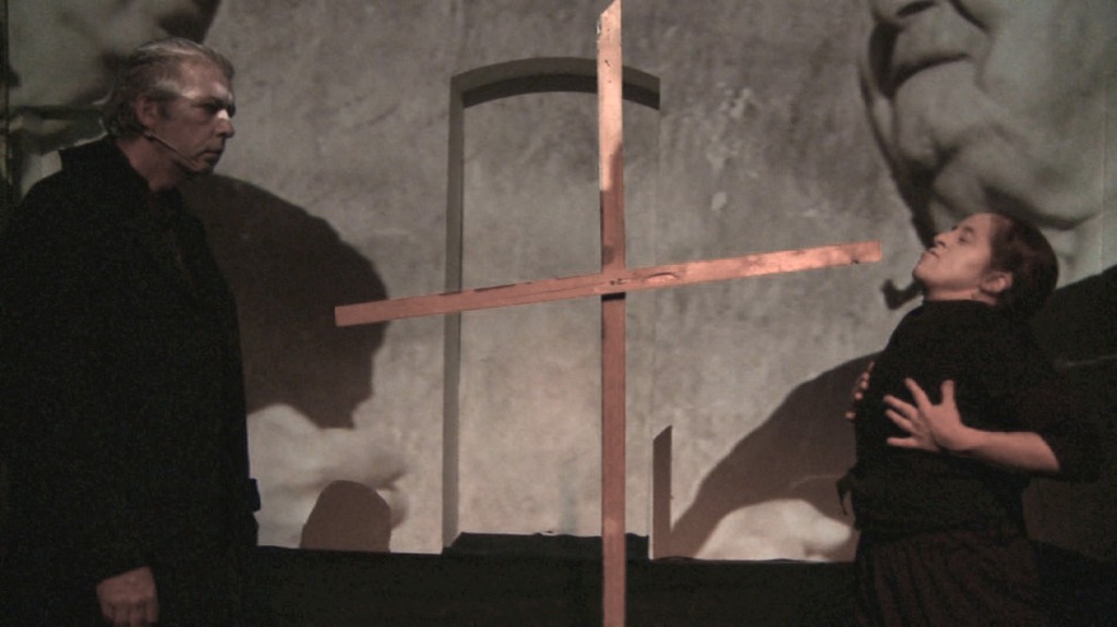 È dal 1999 che Lenz collabora con il Dipartimento di Salute Mentale portando il teatro e l’arte nella vita di chi ha vissuto il manicomio. Ecco che nei loro volti, “trasduttori di forza” (così vengono chiamati dagli autori), nei loro occhi assenti e perennemente sedati – eccezion fatta per l’irrefrenabile donna del gruppo –, si vive quello spaesamento di cui sopra, un continuo malessere di chi guarda con pietas i video nei quali gli attori/pazienti si preparano concedendosi un sorriso o facendosi il trucco, una stretta allo stomaco che d’un sol colpo fa vacillare quel “kritikos” dal quale deriva l’esperienza nel giudizio, per far riemergere improvvisamente la crisi. È un percorso frastornante quello creato tra le sale della Galleria Nazionale, tra busti in marmo, putti che nella semioscurità diventano angoscianti figure appese e amputate, il retropalco e poi la maestosità del teatro. La regina, interpretata da Franck Berzieri, è immobile e minuscola nei 40 metri di palco, attorno il vuoto riempito solo dalle voci, che fuori da qualsiasi canone artistico diventano dolorose cantilene. Sul fondale, in un gigantesco video – come tutti in un bianco e nero dreyeriano – l’espressività della Voghera è prestata a una furente proiezione della regina. Claudio appare solo in video, dolorosa presenza di Guglielmo Gazzelli venuto a mancare pochi giorni prima del debutto, la sua preghiera negata è tra le scene più intense.