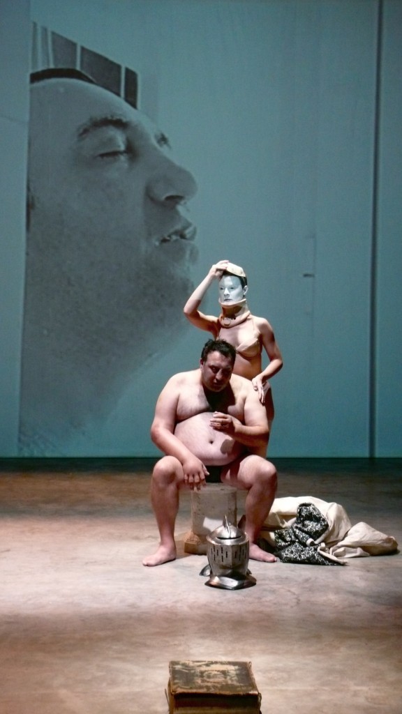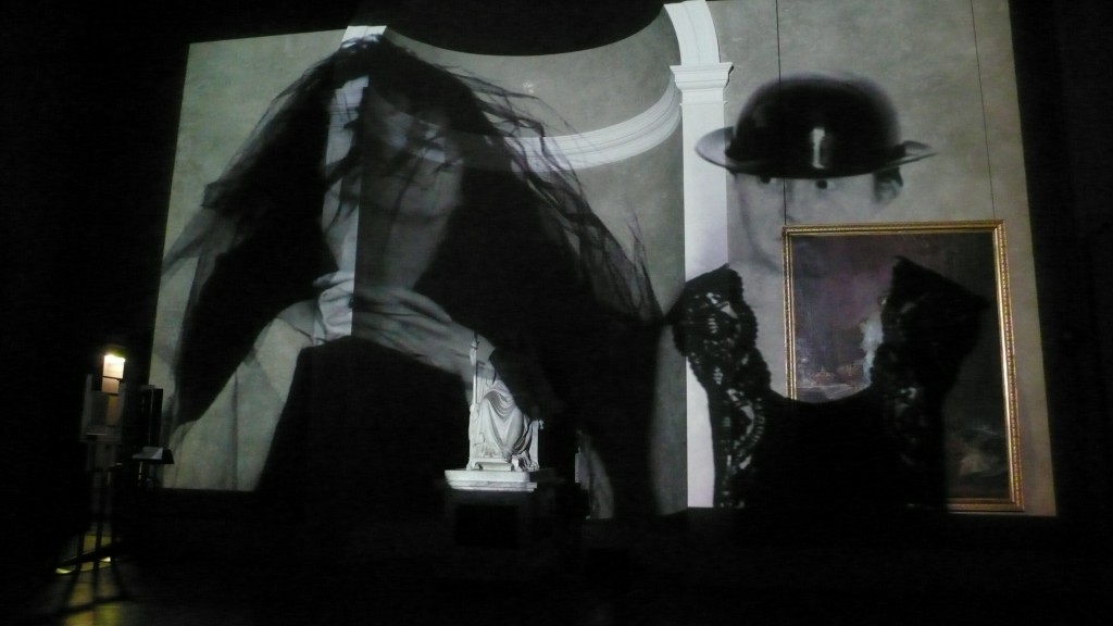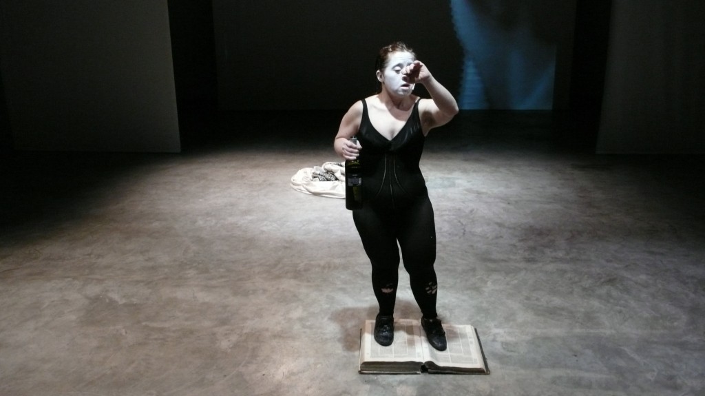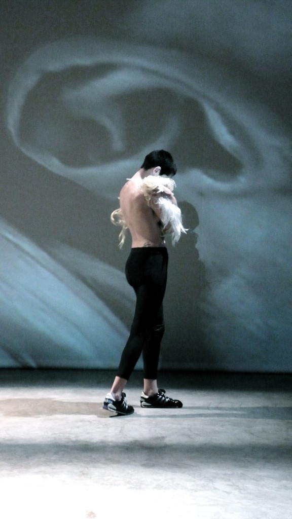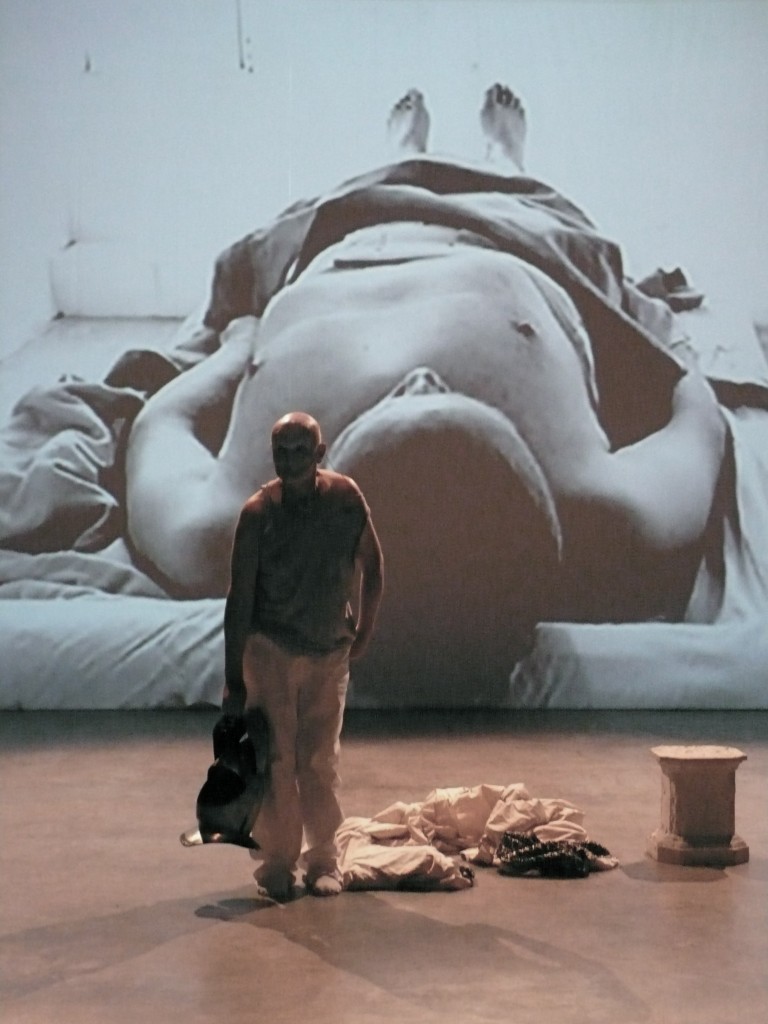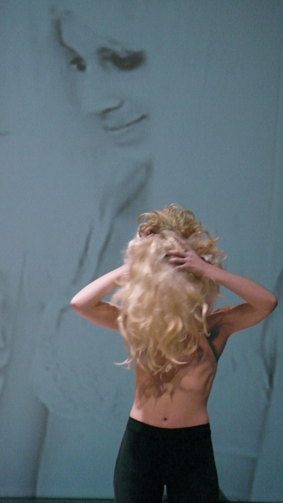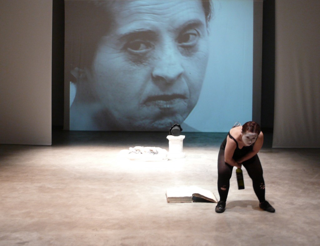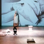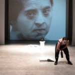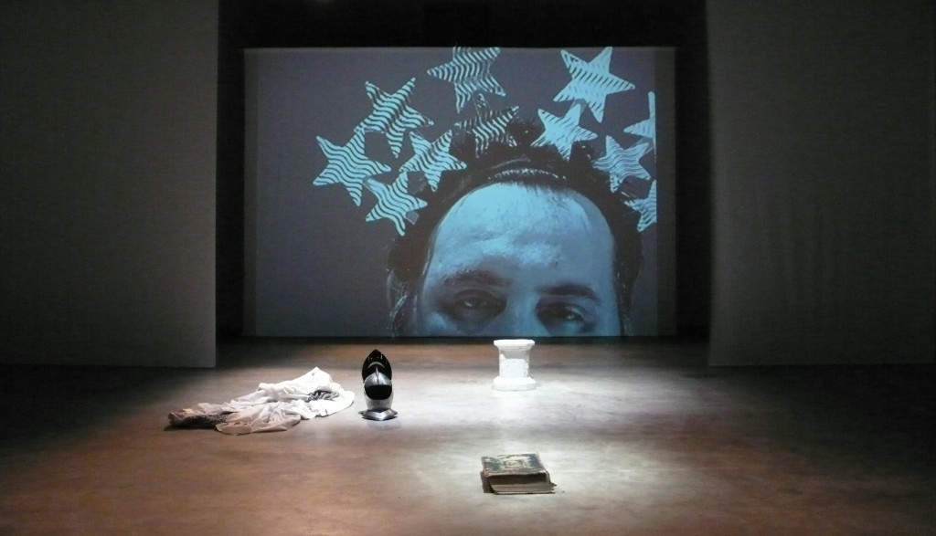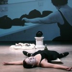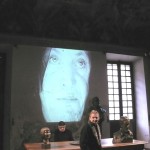 I primi passi nel Palazzo della Pilotta da subito si appesantiscono della grandezza che ci circonda, sulle scale che portano al teatro due attori ci accolgono, a sinistra capiamo che c’è Amleto (Paolo Maccini), neutro, non manifesta un’emozione, sarà la sua maschera naturale per tutto lo spettacolo, a destra Barbara Voghera, è Amleto anche lei, ma la sua interpretazione si oppone diametralmente al primo: si arrampica letteralmente sulla sillabazione della riscrittura di Francesco Pititto, lotta con tutte le forze contro gli impedimenti di pronunzia che le imporrebbe la sindrome di down; cercherà nel suo corpicino una risonanza modulata da continue contrazioni. Sul ballatoio i primi video proiettati (nei quali appare anche il fantasma del padre), ma saranno numerosi e accoglieranno lo spettatore in ogni spazio caratterizzando l’intera scrittura scenica di Maria Federica Maestri. Da sempre questo Amleto è nomade, nel percorso interno dello spettacolo e nella perenne ricerca di spazi non abituali dove installare le proprie emozioni e contraddizioni. Dopo la Rocca dei Rossi e la Reggia di Colorno la collaborazione tra le istituzioni e la compagnia ci ha consegnato questa piccola e fragile utopia del Farnese, purtroppo dissolta con una serata di anticipo a causa del terremoto emiliano.