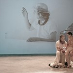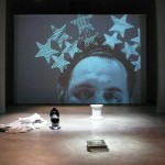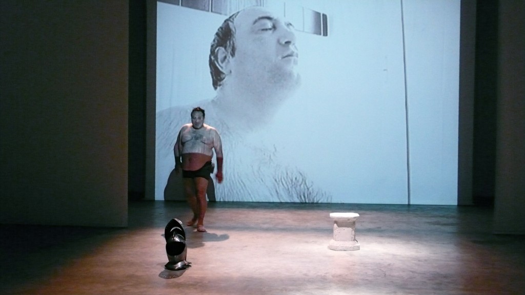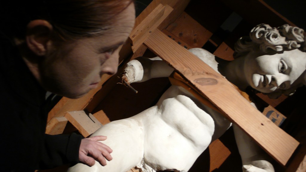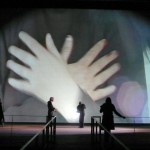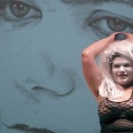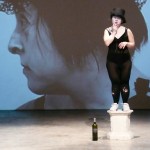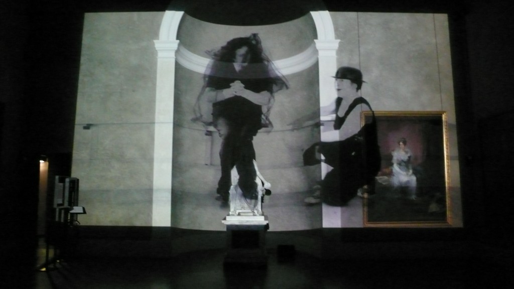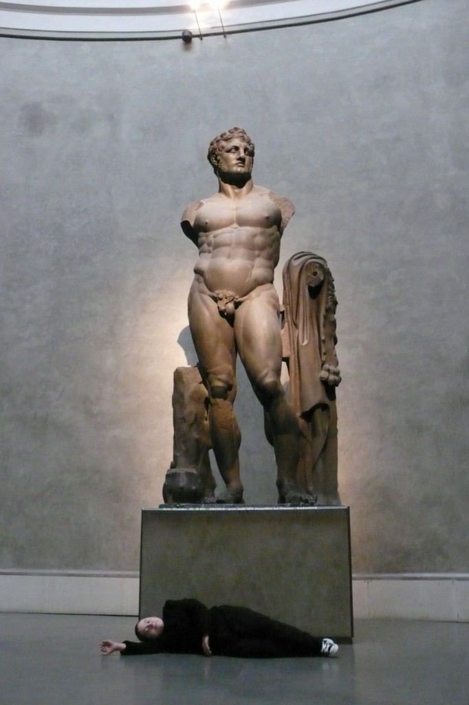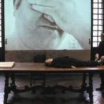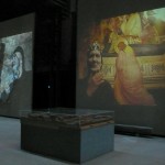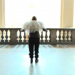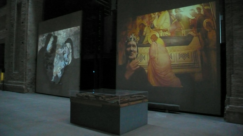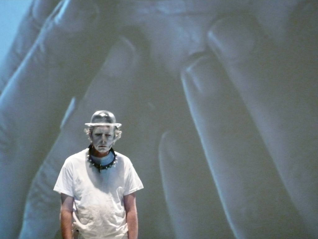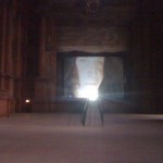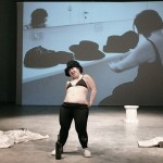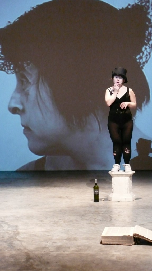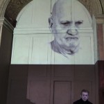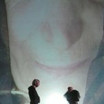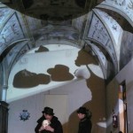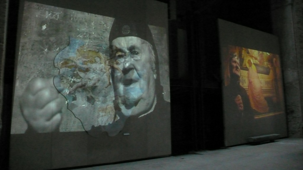 I primi passi nel Palazzo della Pilotta da subito si appesantiscono della grandezza che ci circonda, sulle scale che portano al teatro due attori ci accolgono, a sinistra capiamo che c’è Amleto (Paolo Maccini), neutro, non manifesta un’emozione, sarà la sua maschera naturale per tutto lo spettacolo, a destra Barbara Voghera, è Amleto anche lei, ma la sua interpretazione si oppone diametralmente al primo: si arrampica letteralmente sulla sillabazione della riscrittura di Francesco Pititto, lotta con tutte le forze contro gli impedimenti di pronunzia che le imporrebbe la sindrome di down; cercherà nel suo corpicino una risonanza modulata da continue contrazioni. Sul ballatoio i primi video proiettati (nei quali appare anche il fantasma del padre), ma saranno numerosi e accoglieranno lo spettatore in ogni spazio caratterizzando l’intera scrittura scenica di Maria Federica Maestri. Da sempre questo Amleto è nomade, nel percorso interno dello spettacolo e nella perenne ricerca di spazi non abituali dove installare le proprie emozioni e contraddizioni. Dopo la Rocca dei Rossi e la Reggia di Colorno la collaborazione tra le istituzioni e la compagnia ci ha consegnato questa piccola e fragile utopia del Farnese, purtroppo dissolta con una serata di anticipo a causa del terremoto emiliano.