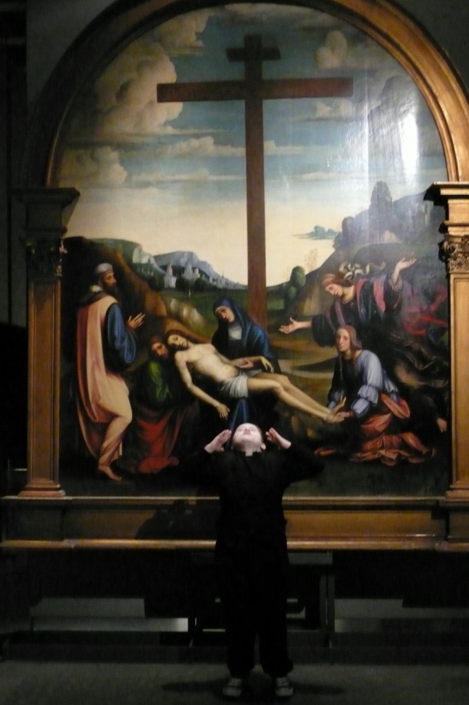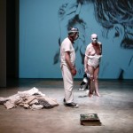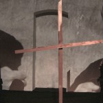 Partiamo dall’equazione Amleto uguale Cristo. Cominciamo così come una bomba al mercato. Come gas in un suk. Amleto, figlio orfano solo a dover fronteggiare il potere, l’abuso, gli affetti che gli hanno voltato le spalle, la pazzia, il non essere creduto, a dover farsi portavoce e vessillo e vendetta per opera del padre. Gesù inviato sulla terra per farsi credere figlio di Dio, operazione impossibile, a portare il verbo del padre, a vendicare con gli atti i precetti inascoltati del genitore, a dare la nuova via, a solcare, anche con il sangue, la nuova terra. Amleto è Gesù anche in un’immagine folgorante che Lenz appronta nelle stanze sotterranee del Palazzo della Pilotta, dove due Amleto sdoppiati stanno come ladroni ai lati di una croce vuota e deserta (…)