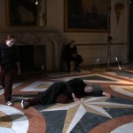 Nella creazione di Lenz Rifrazioni si stratificano tre monumenti dedicati all’inquietudine: il primo è quello testuale, l’Hamlet è il capolavoro fondativo del teatro e della letteratura occidentale moderna, il secondo è quello umano nella complessità ed enormità delle sue pulsioni: la “patologia” di Amleto, la rappresentazione della sua pazzia, coincidono infatti con il vissuto umano degli interpreti, vita e testo sono in totale adesione e in una compenetrazione poetica assoluta. Il terzo monumento è quello architettonico della Reggia di Colorno. Il Palazzo Ducale, con la sua forte plasticità narrativa, scandisce spazialmente le quattordici stazioni drammaturgiche che compongono la messinscena in un percorso performativo attraverso le sale del piano Nobile della Reggia, tra cui la magnifica Sala del Trono.
