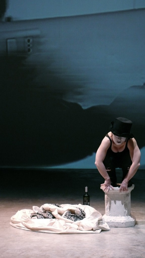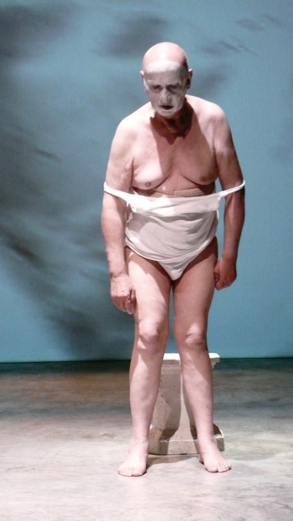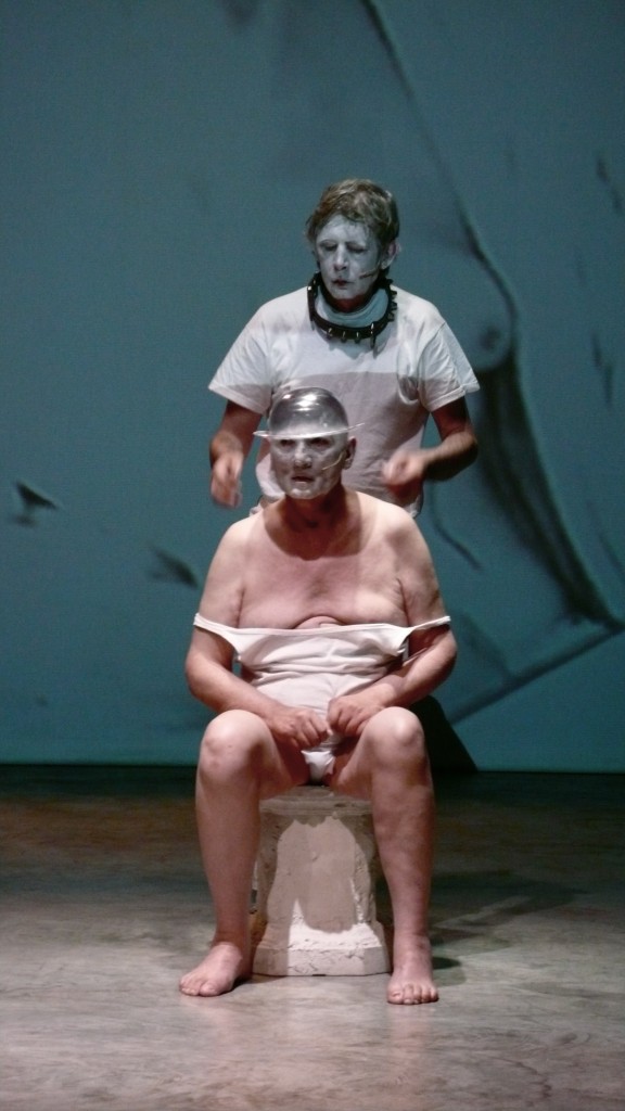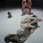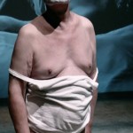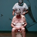 In H 1|2|3 la storia del Principe Amleto è riletta e ‘valutata’ attraverso un’indagine visiva, materica e di riflessione fisica sui corpi degli interpreti che penetra nel linguaggio shakespeariano per definire un nuovo orizzonte drammaturgico concreto, costituito a partire dalle esistenze psichiche e materiali degli attori: il linguaggio circoscrive parole nuove che rendono vive la sofferenza e la tragicità di Hamlet e dell’esistenza stessa, così come della morte che sembra circoscrivere ogni azione umana. Il fantasma del Re, padre di Amleto, costretto a muoversi lentamente e a maledire la sua stessa sorte tragica con parole crudeli, è inscritto all’interno del corpo stanco ma pieno di forza visionaria dell’interprete che sembra scivolare lentamente al di fuori del personaggio shakespeariano fondando uno spazio poetico autonomo inciso nella sua materialità che nell’orrore della morte scolpisce un nuovo ritratto scenico.