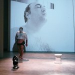 Hamlet s’inebria del ghost virtuale che si rispecchia, paterno e sembiante, nel turbinìo neuromuscolare. Il cervello si carica di corrispondenze amorose e filiali producendo energia costretta. La condizione di uguaglianza, ma opposta nella percezione, scatena una movimento di penetrazione nel mondo reale. Il neurotrasmettitore accende i motori della chimica. L’uomo si muove. Al lavoro, corpo! Il cervello è acceso! Il trasduttore/giocatore conduce il carico energetico della pena, del ritorno paterno senza contatto, del ritorno di fiamma di un circuito sentimentale appena riaperto.