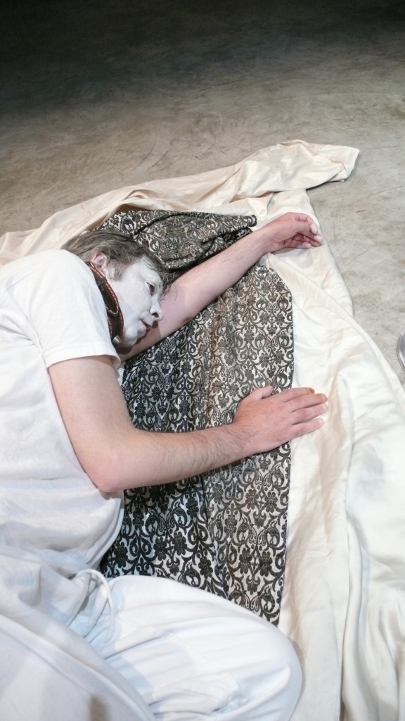 Mentre ogni parola assume peso carnale, mentre i personaggi dell’Amleto cadono sulla scena con la gravità di una follia giocosa, come spettri e cadaveri invisibili, mentre l’amore e l’abbandono divorano le viscere per trasparire come vermi sulla pelle, ai margini della scena gli attori vivono il loro spaesamento, lo stare senza agire, cercano una guida, lanciano sguardi, si aiutano, si tengono per mano, rendono inadeguato lo sguardo dello spettatore. Con quale sensibilità approcciare la scena? Con quale diaframma esistenziale penetrare il castello di Amleto? E cosa accade quando la visione (o visionarietà) lascia spazio all’oggettivazione (o ad una condizione – quella della follia – definitivamente oggettivata)?