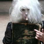 Ofelia fa saltare il cuore, con la sua tiritera al pianoforte, con il suo lamento “sono giovane / son bella / son carina / son simpatica…” mentre si allontana in un lungo loggiato verso il suicidio con una gorgiera simil-elisabettiana caricata da Pierrot (Delfina Rivieri, nome d’altri tempi, da lapide in un cimitero della Bassa, come Ofelia), o con il suo molle stare adagiata su uno scomodo divanetto d’antan tra sedie vuote e due schermi che ne riportano il volto bellissimo e segnato, mentre col corpo debordante ripete, biascicandola, la favola di bellezza gelosa di Biancaneve (Elena Varoli) e gli Amleto sono pronti a trasformarsi in tre becchini in una lunga, spoglia biblioteca, con cappelli e neri semplici abiti che li proiettano sotto cieli beckettiani.