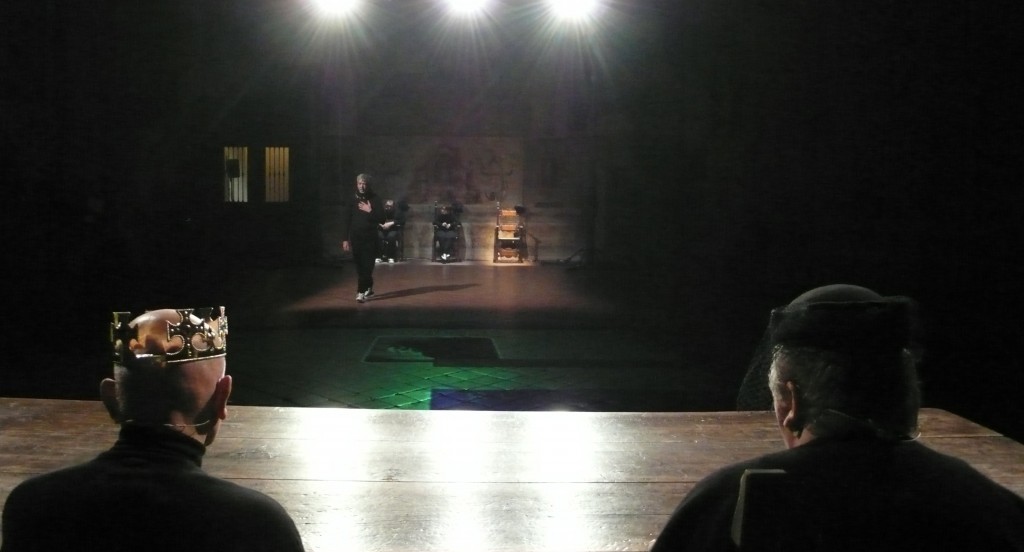 Terza volta in tre anni che i parmigiani Lenz Rifrazioni, al secolo la regista, scenografa e costumista Maria Federica Maestri e il drammaturgo e fotografo Francesco Pititto, mettono in scena il capolavoro shakespeariano con attori ex degenti psichici dell’Ospedale Psichiatrico di Colorno, al fianco della loro attrice storica, Barbara Voghera, ragazza affetta dalla sindrome di Down, carica di una forza recitativa, di un controllo emozionale e di un’espressività vocale eccezionali ed impetuosi (…) Il viaggio (difficile da gestire lo spostamento di sessanta spettatori a replica, un plauso alla professionalità di tutte le addette), perché letteralmente è itinerante, ed è una via crucis nei meandri del Palazzo della Pilotta, passando nella Galleria Nazionale e sfociando dentro il Teatro Farnese, come essere dentro le viscere del protagonista, nei suoi pensieri offuscati, nelle eco che si perdono, nei passi incomprensibili, nelle sue vene occluse, nei suoi incubi più laceranti e dubbiosi, nei suoi intestini deviati, cadendo, cercando nel buio senza luce, nelle nebbie che non permettono di vederci chiaro, di capire, di trovare un proprio posto nel mondo.