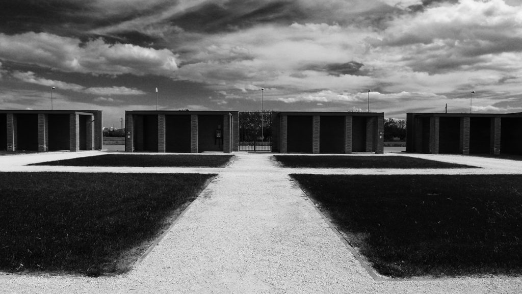 II nuovo Tempio di cremazione di Parma è ubicato a nord dell’antico Cimitero di Valera, tra questo e la tangenziale recentemente realizzata, circa un chilometro a ovest della città. Da una parte la città e la Via Emilia, dall’altra la campagna e l’abitato di Valera, segnano i riferimenti di un paesaggio storicamente caratterizzato dall’ordine centuriale della colonizzazione romana e dalla fondamentale viabilità altomedievale: una civiltà ancora leggibile in filigrana o in superficie nei rinvenimenti della Domus romana, nel tracciato delle strade e dei poderi, nell’architettura romanica delle chiese di Vicofertile, S. Pancrazio, S. Croce. Il Tempio emerge all’interno del recinto, visibile da lontano e a chi percorre la tangenziale, come un grande elemento basamentale, preceduto da due spazi coperti alle estremità, analoghi a sud e a nord, verso Valera e verso Parma. Quale frammento tagliato, ospita e sospende nel tempo il rito del passaggio, rendendolo un unico grande simbolo urbano, quasi altare, in cui la città celebra, in modo incessante, la memoria di sé attraverso la memoria dei suoi morti. Il rapporto tra i due recinti, antico e progettato, e quello tra essi, la campagna e l’abitato di Valera, costituisce il primo tema affrontato dal progetto. Il nuovo recinto, un recinto fatto di spazio architettonico perché pensato come un muro porticato e abitato dai cellari che ospitano le polveri, contiene, in un percorso ininterrotto, il rapporto tra vita e morte, fissandone la lettura nel senso di una continuità ideale della vita. In forma di un grande rettangolo la cui giacitura si attesta a fianco del cimitero esistente il porticato, al quale si accede dall’area a parcheggio posta sul lato più stretto, secondo l’uso attuale del cimitero esistente, abbraccia i momenti del percorso stabilendone una gerarchia precisa, il cui medium architettonico è il Tempio vero e proprio, collocato al centro delle due dimensioni. Quest’ultimo segna, anche spazialmente, i tempi del rito, tra esterno e interno, dividendo, in un percorso processionale, la zona dell’accoglienza del defunto e dei famigliari, posta in prossimità dell’ingresso, da quella del Giardino di aspersione delle ceneri, collocato dopo gli spazi di commiato e di cremazione, caratterizzandosi per due facciate analoghe a Nord e a Sud, quasi due sezioni che consentono di ricavare altrettanti spazi aperti e coperti. La pianta dell’edificio è segnata da due grandi quadrati, tra loro collegati attraverso un quadrato di dimensione inferiore. Il primo quadrato è costituito dalla grande Sala del Commiato, illuminata da una sorgente di luce centrale e occupata soltanto dalle colonne sulle pareti e dall’ambone riservato all’orazione. Una alta porta posta sulla parete di fondo costituisce il varco di transizione della salma verso il secondo quadrato, di dimensione inferiore, camera di luce illuminata zenitalmente, completamente vuota. La salma così scompare nella luce. Il terzo quadrato è costituito dal crematorio vero e proprio, in cui il corpo viene bruciato. Tutti gli ambienti di servizio sono ricavati sui lati. L’attraversamento, con la sua ritualità interna, segna la gerarchia spaziale dei diversi momenti, peraltro continuamente ricomposta dal portico del recinto, che sarà completato negli anni con gli accrescimenti del Cimitero e avvolgerà in un percorso infinito.