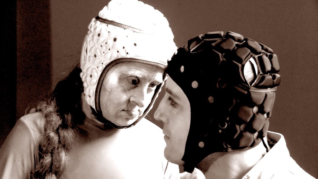 Gli attori armati del vivere di ogni giorno, corazzati e al contempo sensibili al passato e al presente, già impressi nel corpo e nella mente gli eroi cavallereschi, maghi e maghe di loro stessi, fanciulle in fuga senza direzione e senza sosta attivano trasmettitori dell’invenzione e del gesto essenziale, e la grande opera diventa affresco senza tempo.