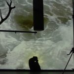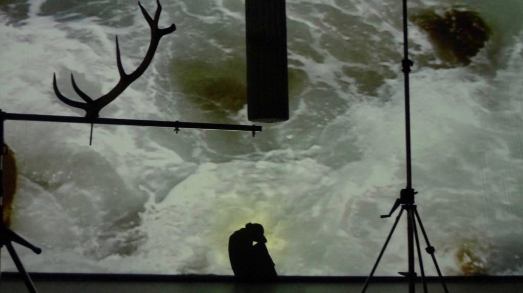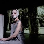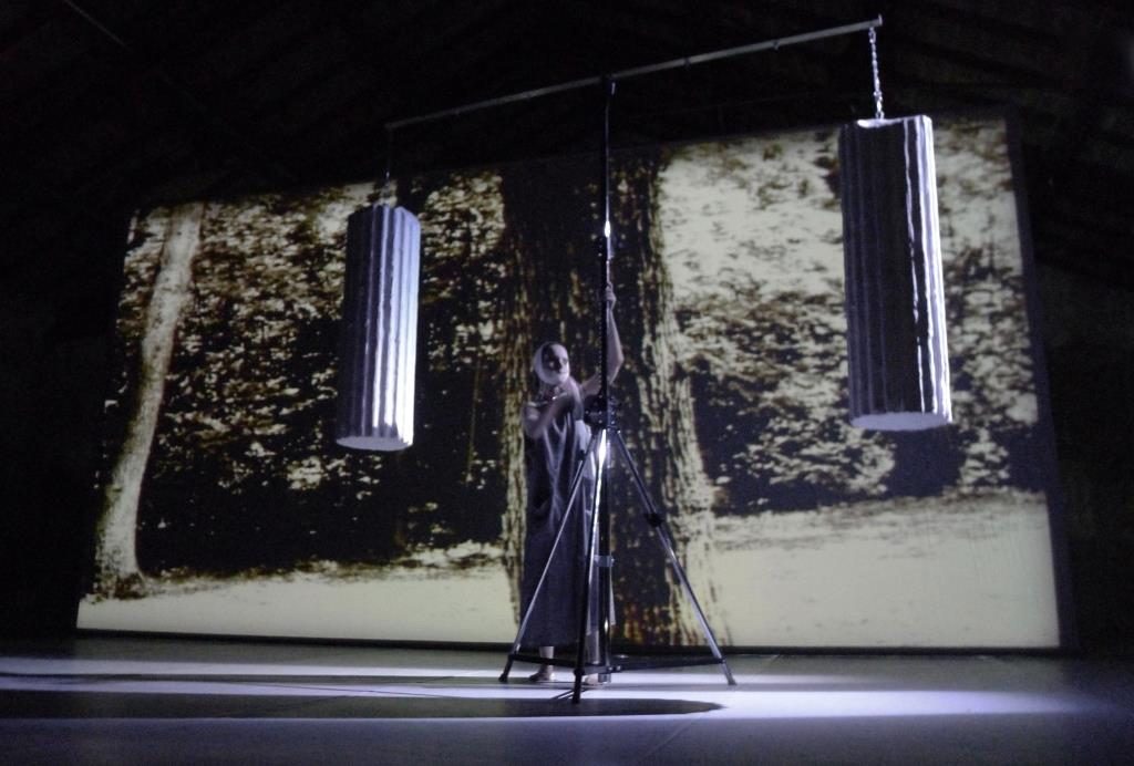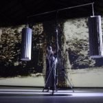 Accoglie lo spettatore una scenografia minimalista basata su una suggestiva sineddoche concettuale e visiva che crea un’ambientazione ibrida tra il sogno e l’ossessione. Le corna della cerva sacrificata al posto della donna oscillano come un monito agganciate a un sottile cavalletto meccanico e anche il tempio di Artemide è evocato da due colonne sospese a un analogo meccanismo. In un angolo lampeggia un misterioso altare su cui troneggia un lavacro trasparente, sacrale premonizione del rituale post moderno che si compirà nei successivi 45 minuti. (more)