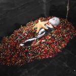Perdendo la limitazione emotiva del suo apparire il corpo si dispone al martirio espressivo della sua essenza organica. Il momento supremo della fine si manifesta con la perdita dei fluidi corporali; il corpo della fiaba inizia il suo dissolvimento lasciando come testamento organico, una nuova silhouette psico-fisica. Schiuma d’anima? La forma dell’estasi benedetta dalla prova è all’opera nel mutare del corpo nato non governato dalla forma perdurante regina nella storia. Nella fiaba dove troneggia il tempo della perdita. la sventura degli agnelli con due teste non appare la vetrina del veduto, ma il vetroso potere della diamorfosi corporale.