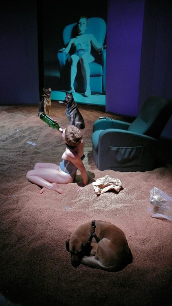 Bruciando è la breve epopea di Tiresia (Valentina Barbarini), un vecchio profeta cieco con le tette di donna, che vaga per le strade di una città assediata da avvocati, banchieri, rifiuti e pantegane. Accompagnato da un fedele cane-guida, è parodia tragica del vaticinio Delfico dell’incarnazione: il vecchio d’ambo i sessi non annuncia l’immacolato concepimento del Figlio di Dio, ma amori impuri svaporati nell’alcol e una morte senza resurrezione.
