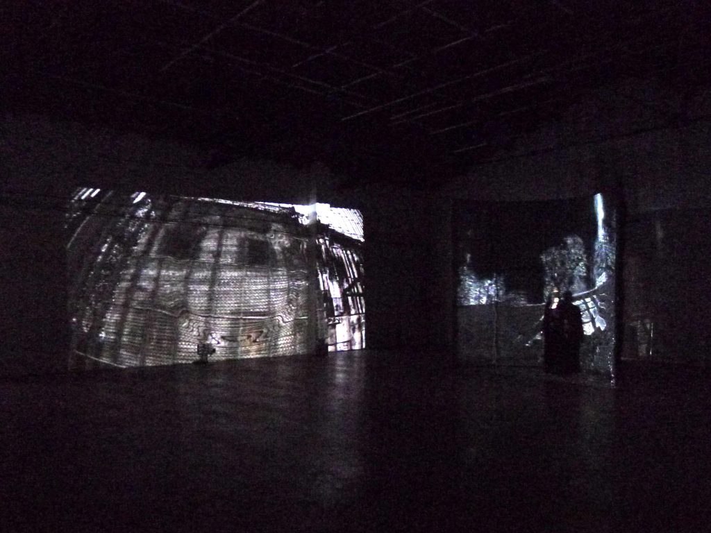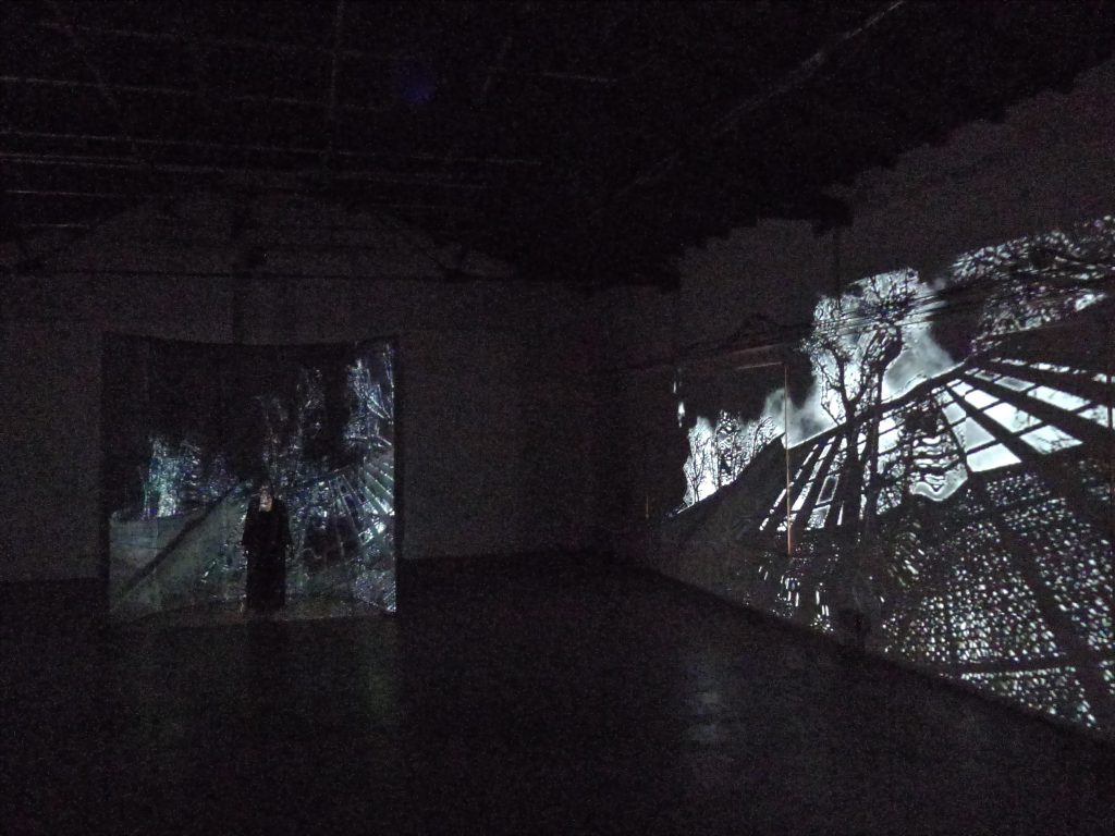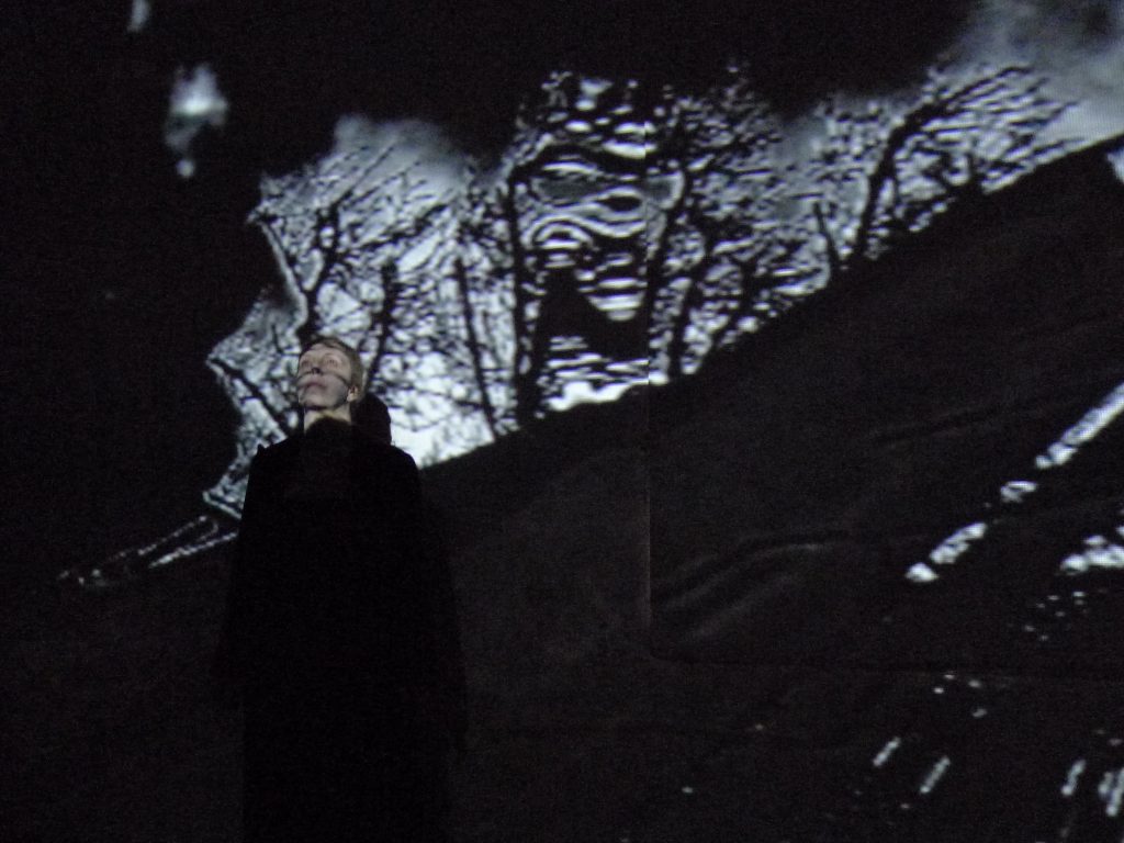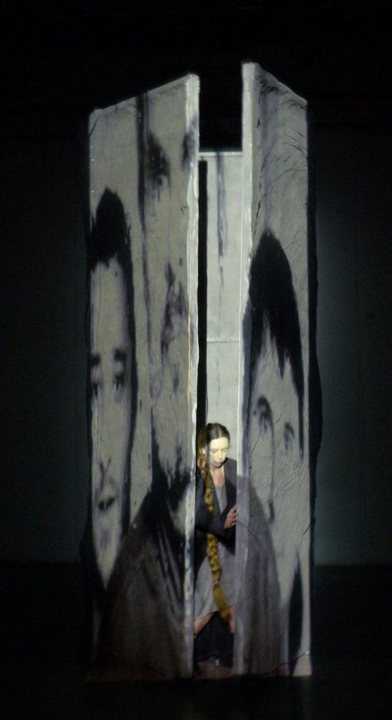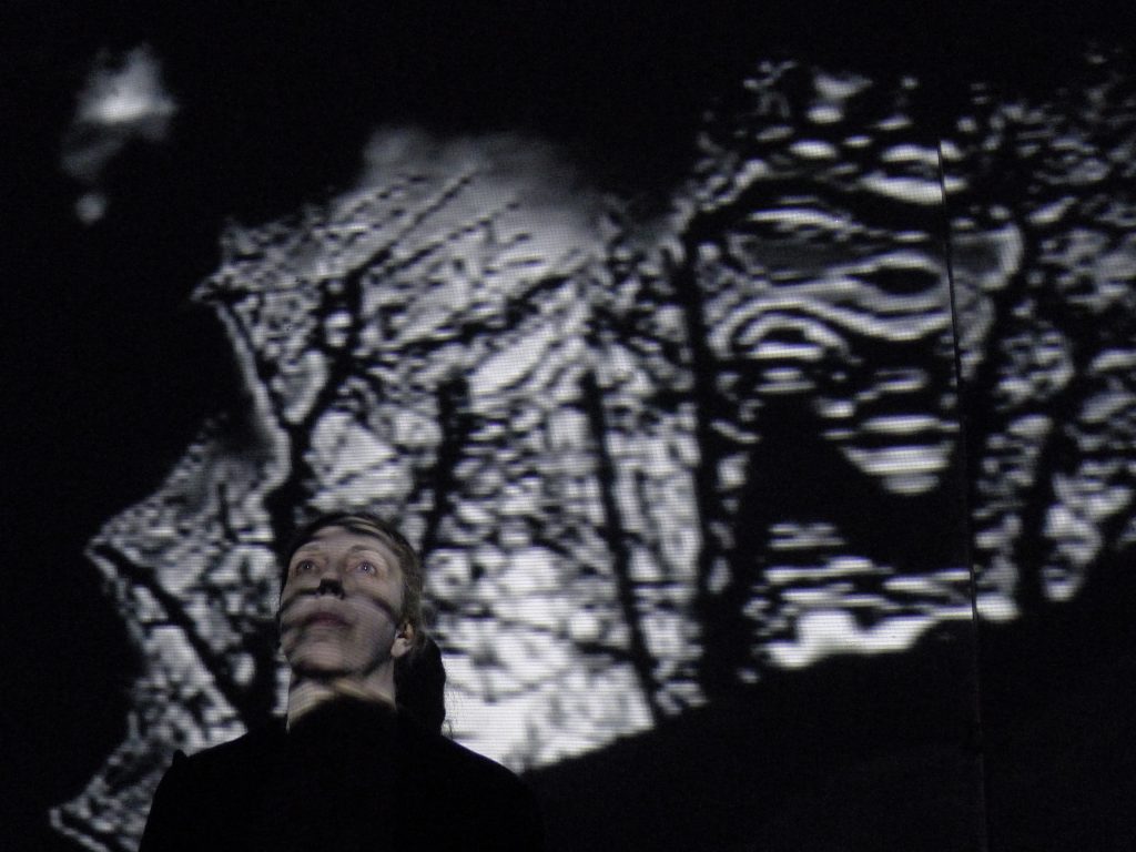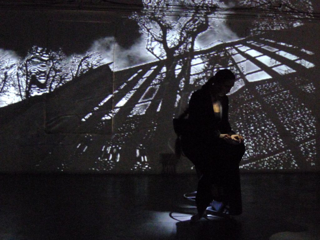 (…) Senso di colpa che è fulcro e snodo anche della personalissima (come sempre originale e visionaria) versione del “Macbeth”pensato e architettato dai Lenz nelle loro forme deturpate, video nebbiosi sfumati, voci disturbanti come crepe a creare un tappeto dove i sensi si perdono e defluiscono, si miscelano come vasi comunicanti, si frantumano. Il canto shakespeariano sulla colpa e sui fantasmi che assillano la mente del colpevole qui diventamonologo (Sandra Soncini vestale rituale imperturbabile) ma supportato da un coro, in video, composto dai volti frammentati dipazienti detenuti in Ospedali psichiatrici giudiziari (Opg). Pezzi di occhi e denti (di chi ha commesso realmente reati e si è macchiato di colpe indelebili) proiettati su una struttura circolare che ingloba come placenta, protegge come mano, si chiude come persiana, sbadiglia come confessionale, che è paravento dove nascondersi, grotta e abbraccio e curva. (…)