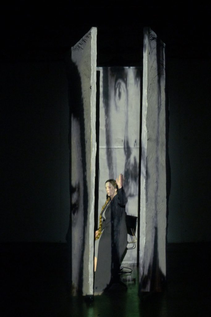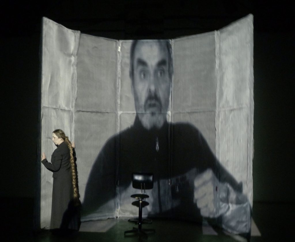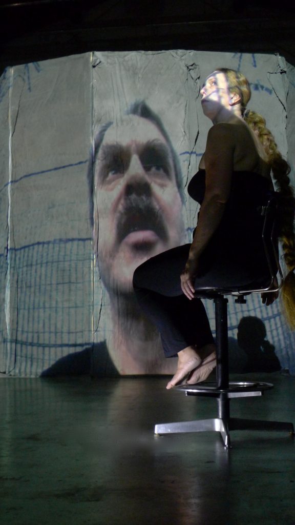 Scelta forte quella di creare un diaframma tra la performer, presente in scena, e gli ospiti del REMS, solo in video. Scelta, in parte dovuta a norme di sicurezza, che rafforza, a livello poetico, queste figure quali presenze/assenze, imago archetipiche di colpa dell’immaginario filmico, che si fanno materia carnale all’interno della struttura/prigione (reale e metaforica), sebbene non possano e non debbano compartecipare la scena per non trasformarsi in racconto di se stesse.(…)