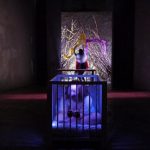 L’installazione del primo capitolo evidenzia un piedistallo-nido che trae ispirazione formale dall’opera di Mario Merz, in cui i personaggi femminili della tragedia – Clitennestra e Cassandra – depongono e covano le proprie uova. La profanazione del nido innesca il conflitto tragico tra le forze, l’atto irreparabile che ne sentenzia la doppia morte.