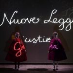 Non siamo stati ‘divorati’ artisticamente dal peso delle cronache tragiche di dolore e morte che ci vengono consegnate quotidianamente ormai da molti mesi. Non se ne avvertono tracce dirette nelle figurazioni sceniche che hanno trovato compimento in questo periodo guerra pandemica, perché teatro è per sua natura arte tragica, opera di lutto e catarsi, luogo di metamorfosi del male/malattia – che nella tremenda folgorazione iniziale dell’Edipo coincide con il male individuale – in esperienza eroica di perdita. Durante le prove dell’ultimo capitolo dell’OresteaPupilla – se ne è tenuto conto in termini formali: sicuramente ha interferito nel modus performandi delle sei attrici dell’ensemble, che non potevano toccarsi e che, per lavorare in sicurezza, dovevano rimanere forzatamente distanziate. Si è trattato di trasferire la loro sofferenza artistica, il loro depotenziamento fisico, in potenziamento concettuale, ho cercato di guidarle alla ricerca di un corpo antiretorico, più sensibile all’impulso interiore, capace di esaltare il proprio campo emotivo in una nuova grammatica di trattenimento. L’installazione scenica, ha subito una forte variazione formale, si è ‘ionizzata’, svuotata dei pieni materici, ha acquisito una carica energetica superiore, si è fatta più vibrante, attivata da una nuova segnificazione virtuale live.