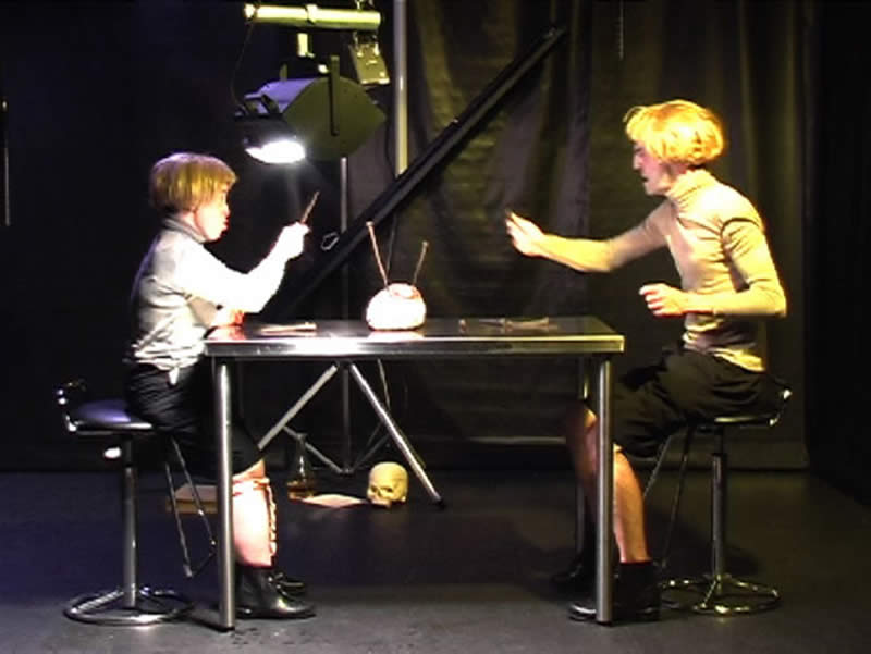 “To be, or not to be, I there’s the point” dice Amleto nel suo ur. “Io qui, o io non qui…” dice l’attrice nel proprio originario mondo di vitasogno, mentre il compagno attore rifrange echi di memorie ormai lontane (l’Ur-Hamlet nella scrittura scaldatiana, l’Ham-let di Lenz Rifrazioni). Insieme, iniziano il viaggio a due come gli eroi di Cervantes, verso il non-senso del dire non dicendo.