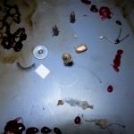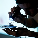 The Telescope guarda, attraverso un telescopio rotto, un mondo che reagisce all’essere guardato, un mondo che è un riflesso dello spettatore. Una serie di eventi magnetici e reazioni chimiche è messa in scena sotto lo sguardo di una camera al microscopio, e presentata dal vivo come fosse un documentario su una terra sconosciuta. In accompagnamento, una collezione di sculture in miniatura, dipinti e collages presenta altre sfaccettature di questo territorio, dei suoi abitanti, dei suoi monumenti e dei suoi processi naturali.