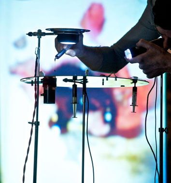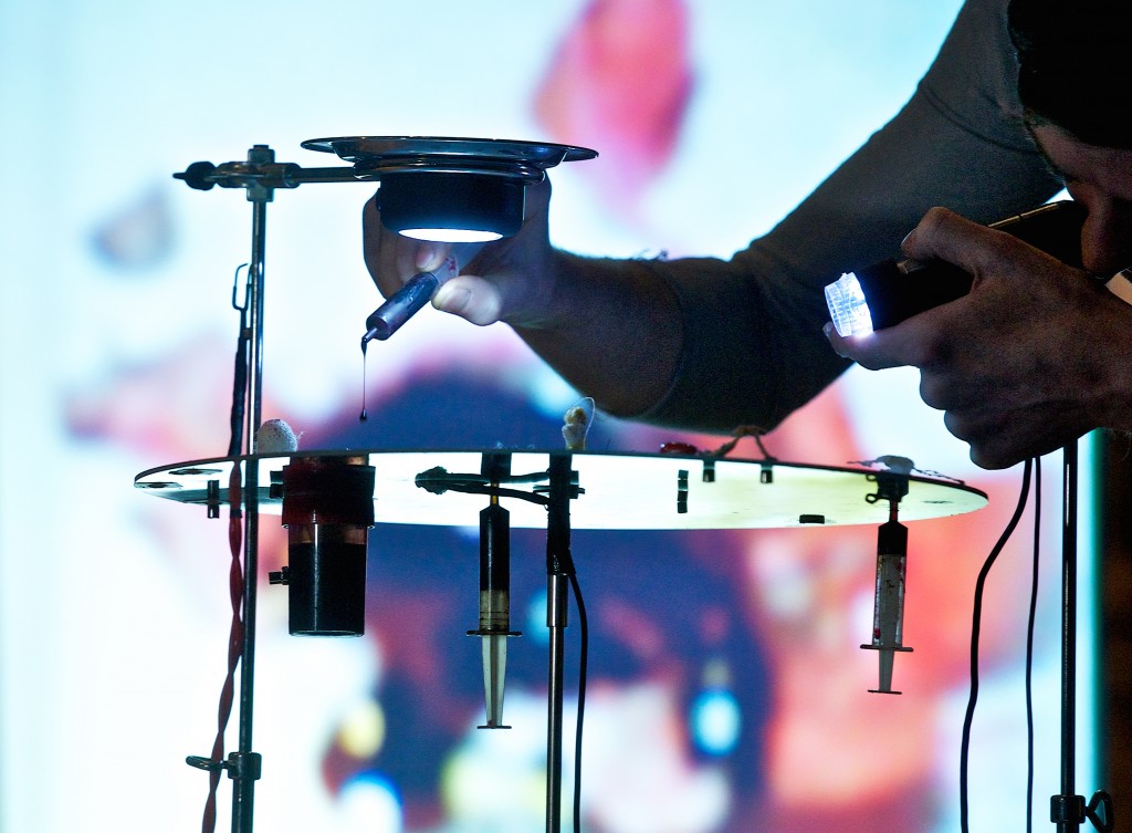 The Telescope guarda, attraverso un telescopio rotto, un mondo che reagisce all’essere guardato, un mondo che è un riflesso dello spettatore. Una serie di eventi magnetici e reazioni chimiche è messa in scena sotto lo sguardo di una camera al microscopio, e presentata dal vivo come fosse un documentario su una terra sconosciuta. In accompagnamento, una collezione di sculture in miniatura, dipinti e collages presenta altre sfaccettature di questo territorio, dei suoi abitanti, dei suoi monumenti e dei suoi processi naturali.