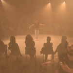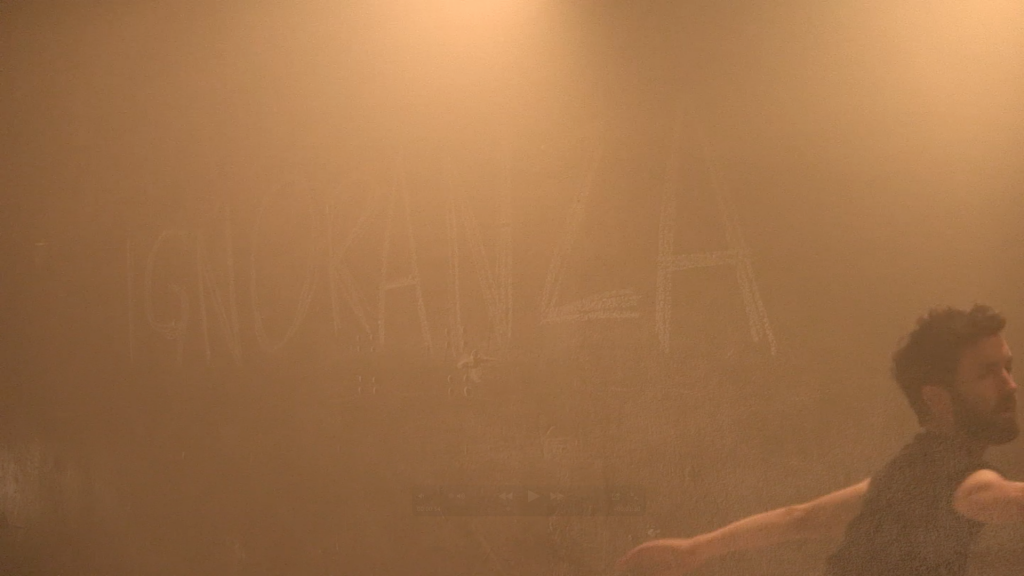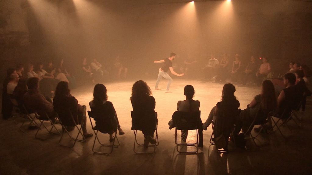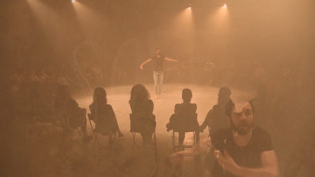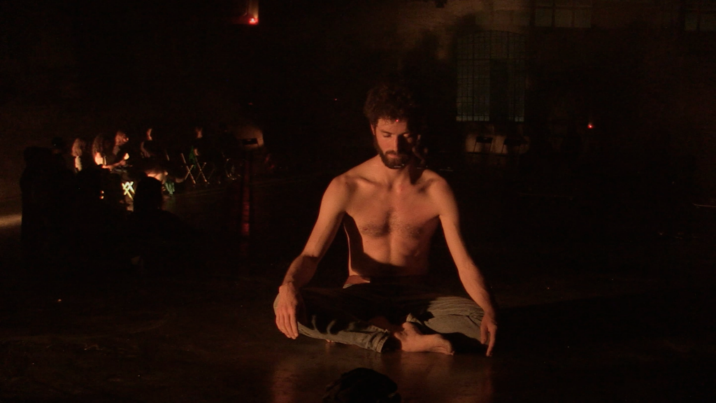 Si tratta di un lavoro d’improvvisazione, la cui natura risiede nel momento, nella creazione del qui ed ora. Tale Improvvisazione, la pratica dell’hic et nunc che è essa stessa performance, la consapevolezza della performance e della vita che si avvicina alla meditazione è ciò che Simon propone come modalità per guardare alla tematica della follia. Da un lato la mente e il corpo purificati dallo stato temporale del ritiro, dall’altro l’osservazione del concetto della follia per sè stesso e nel mondo. E forse, con ciò, egli tenta di trovare il modo per curare la malattia o di percepirla da un’altra angolazione. L’esperienza della performance coincide con l’incontro tra lo stato mentale e lo stato corporeo del performer.