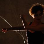 L’ideogramma giapponese tradotto con la parola MA è uno speciale tipo di sensibilità estetica esprimibile come uno spazio vuoto, un silenzio o un’immobilità tra due cose. MA#museo lavora sulla condizione di separazione tra i corpi che rende autentico lo spazio di dialogo e riflette sui trasferimenti di stato della materia. La tecnologia e la costruzione artigianale si fondono con il linguaggio della scena, creando uno spazio di delicata intimità, in cui lo stare è la condizione essenziale di ascolto. La danza dialoga con un’architettura di sculture mobili in fil di ferro e virtuali, proiezioni video e luce. Il suono è raccolto dal vivo dal movimento degli oggetti e restituito sotto forma di live electronics. La coreografia si sviluppa all’interno e all’esterno di due strutture cubiformi, una piena e l’altra vuota. La danza accarezza e include il pubblico. Si sospende il tempo portando il lavoro in una zona di limite con la performance.