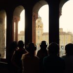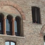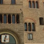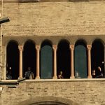 Veduta > è un formato modulare, con cast e durate variabili, dedicato alla città e alla visione prospettica del paesaggio urbano. Il pubblico fruisce la performance in cuffia, affacciato ad un punto panoramico della città da individuare di volta in volta. Il punto di vista è ampio e può interessare spazi molto vicini e molto lontani, collegati tra loro dalla traccia sonora (registrata in olofonia con una forte impronta cinematografica) e dalla dislocazione dei performer. Nell’episodio di Bologna che ha inaugurato questo formato, il percorso della performance spaziava dalla Sala Farnese del Palazzo Comunale alla Piazza Maggiore, fino alla cima della Torre degli Asinelli. La veduta urbana viene trasformata dall’ascolto in un luogo che galleggia tra il presente e il possibile; lo spettatore si immerge in un paesaggio che non è più semplicemente ciò che gli si para davanti, ma – così come in una allegoria sacra – un concentrato di coincidenze e configurazioni che sembrano rimandare ad altro. Il reale è ora offuscato ora nitidamente messo a fuoco dal suono, che presiede al potere immaginifico della visione e rende possibile la moltiplicazione dei dettagli in un luogo dalle coordinate immaginarie. Strani complotti e misteriose attività ridisegnano il qui e ora per rileggere l’urbanità attraverso posture e segni di un altrove, indagato da danze asciutte che possono essere molto vicine o lontanissime, all’orizzonte. Dentro e fuori. La danza è dunque letteralmente un punto di vista sul mondo che inscrive e afferma la figura nello spazio della comunità suggerendo allo stesso tempo una via di fuga.