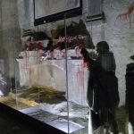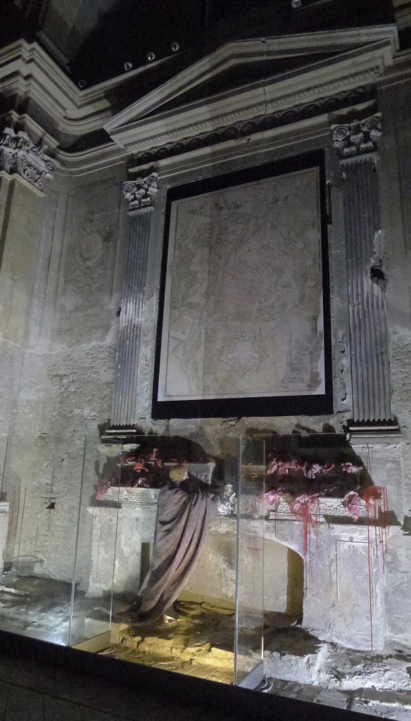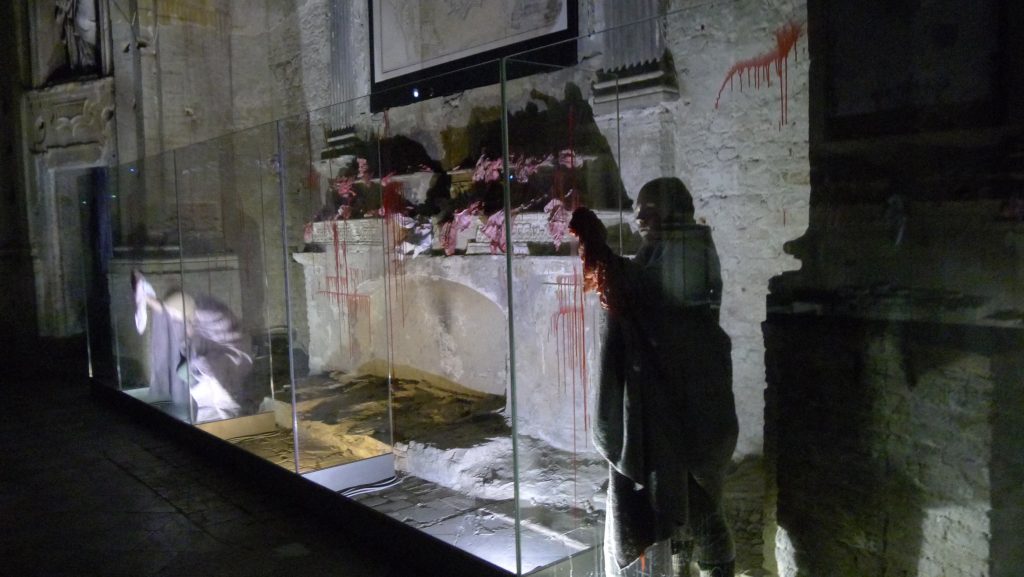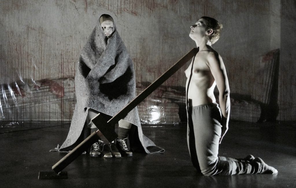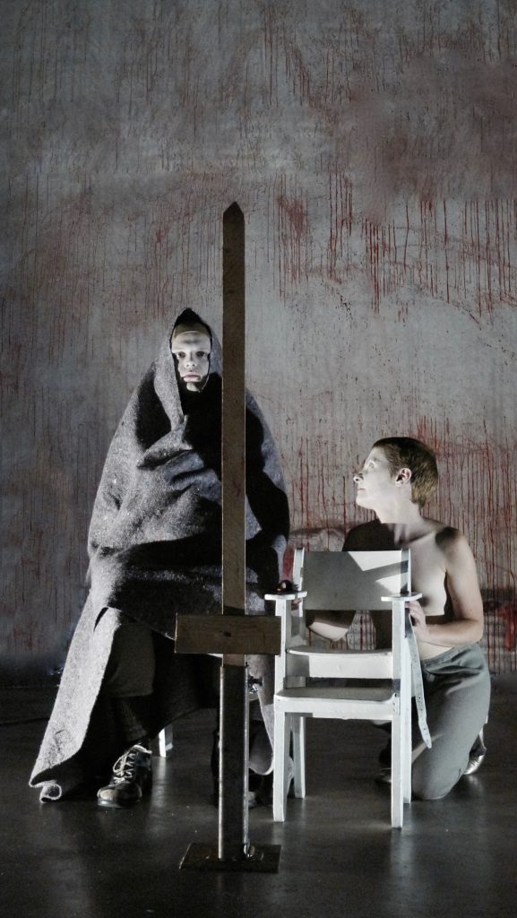 L’installazione scenica curata da Maria Federica Maestri sarà costituita da un altare materico ‘tenero e crudele’ ispirato alle opere organiche di Joseph Beuys; alle spalle della scena una iconostasi ritrae vecchie divinità ammutolite davanti alla strage che sta per compiersi. Nessuna cerimonia, nessun padre da odiare, nessuna madre da desiderare, nessun passato e nessun futuro, solo un ‘al di qua’ anonimo ed insanguinato. Come la cerva ferita a morte, una generazione senza identità corre incontro al proprio destino tragico. Simile al corpo straziato di Pierpaolo Pasolini, principessa destinata al sacrificio, l’innocenza della vittima è perenne monumento all’orrore della violenza.