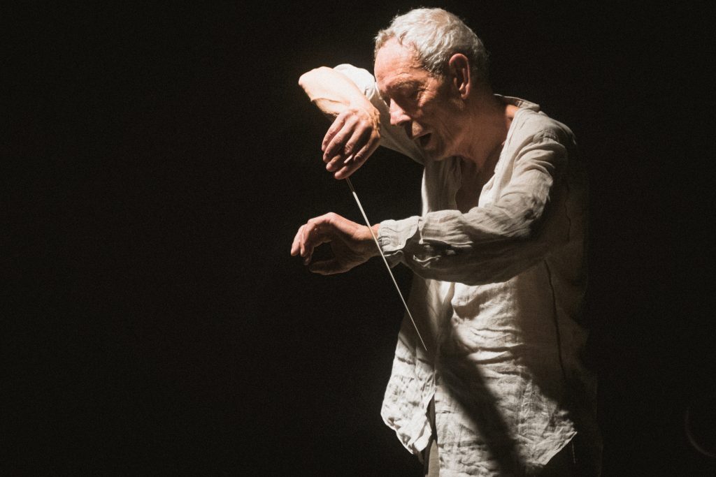 Scarnificare è verbo tragico, luogo dell’estremo pensare le cose nella loro natura di nude presenze in stato di abbandono a se stesse. L’attore è una marionetta che affida al corpo e alla voce questo atto di parole e gesti, dove ogni enunciato è una forma di esistenza, sovversione e apertura a inarrestabili mutamenti, nel dispendio e nella follia. Egli è un soggetto scarnificato che vive in una irrisolvibile indistinzione, che gli impedisce di affermarsi compiutamente in una specie, ossia in quella unicamente umana.